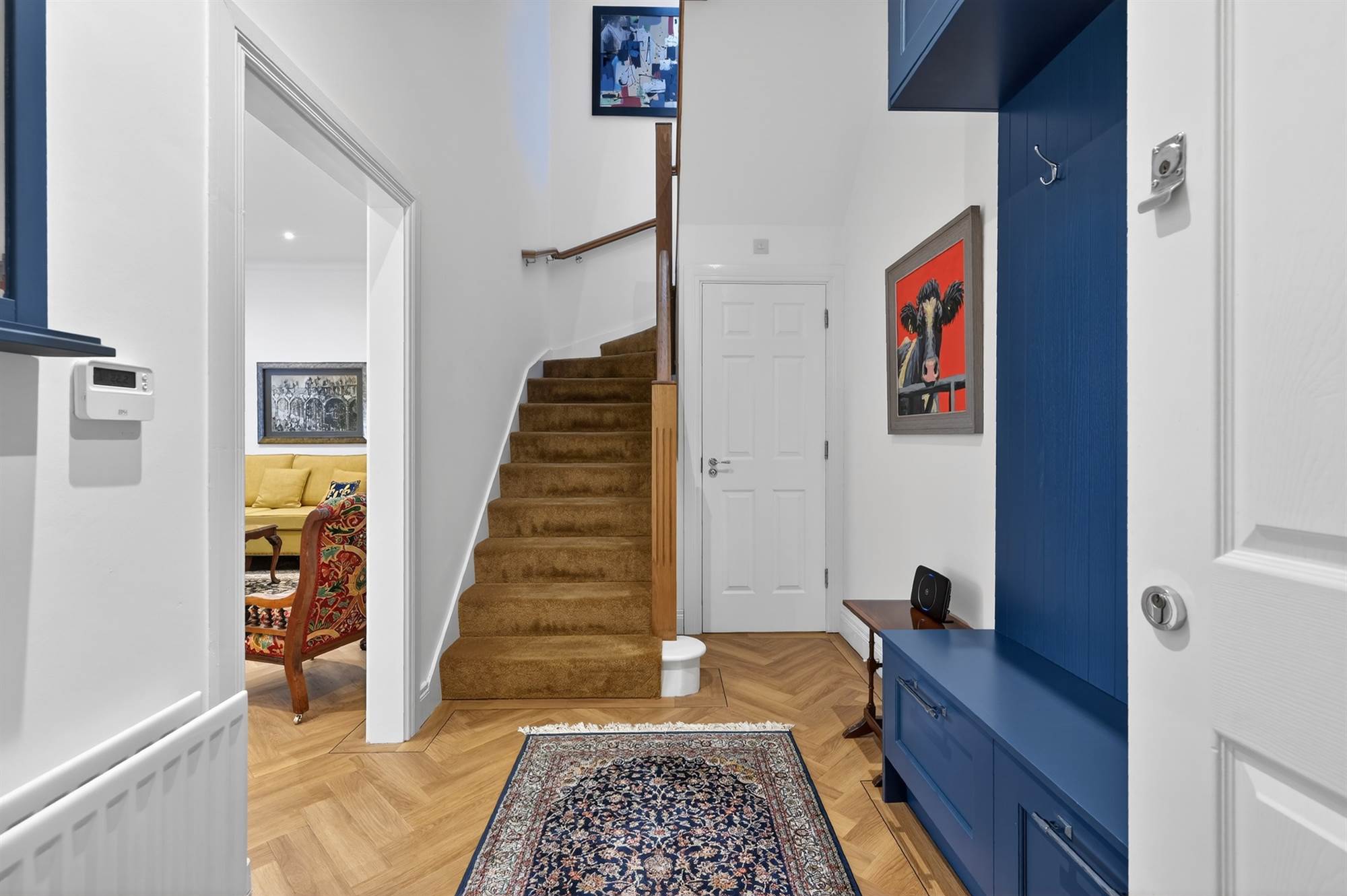 Luxurious vinyl oak herringbone style floor. Boot room area and cloaks area. Built-in storage cupboards.