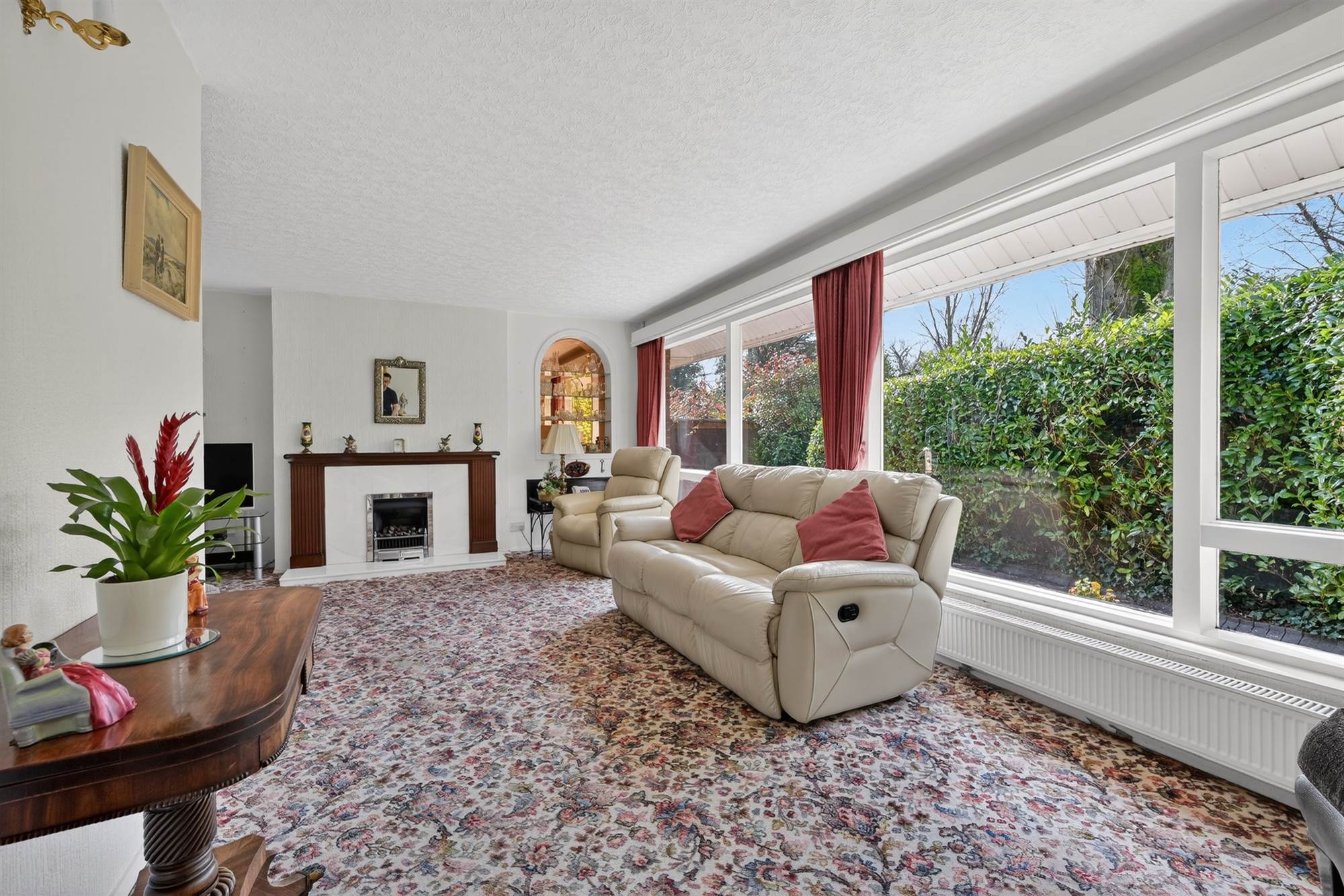 (at widest points). Attractive wooden fireplace with marble inset and hearth, gas coal effect fire.