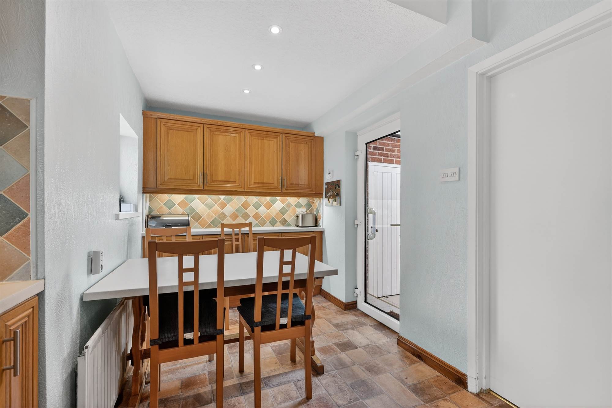 Cloaks cupboard, uPVC door to side.