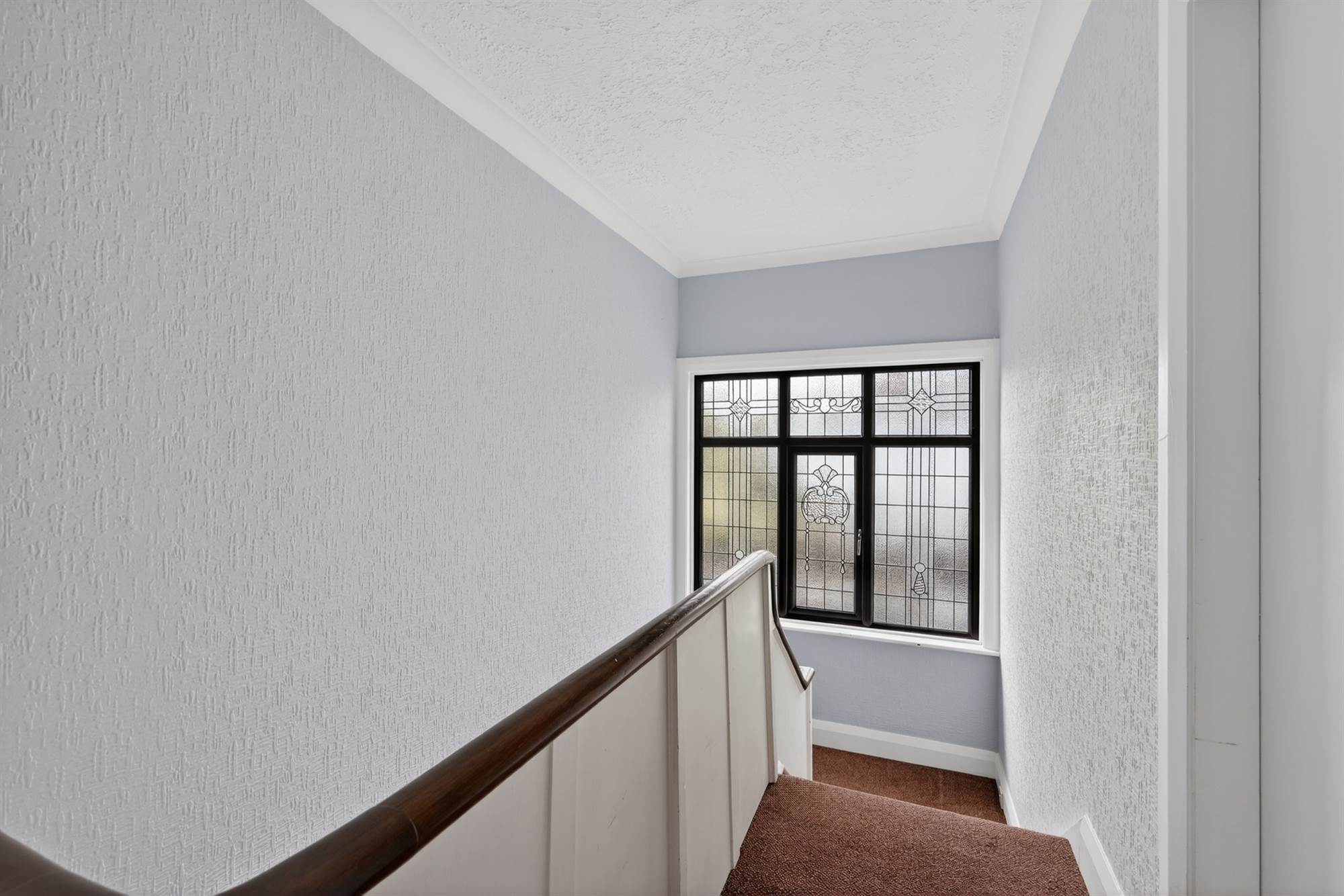 Feature stained glass window to landing adding character and natural light