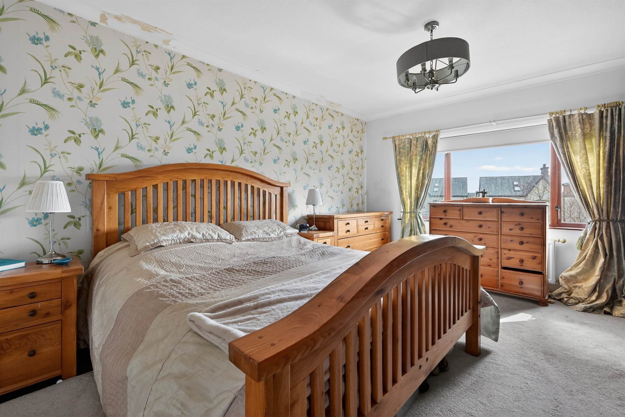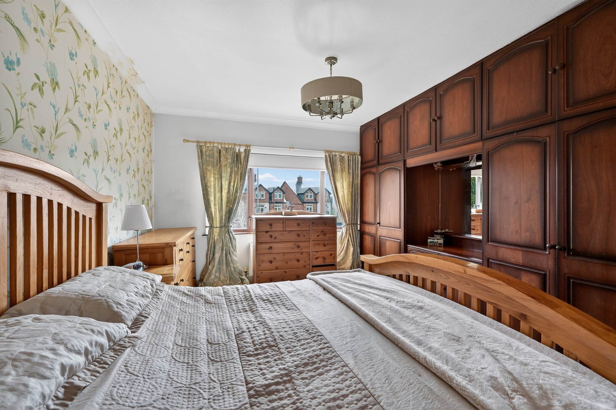 Outlook to front, cornice ceiling. Built-in wardrobes and dressing area.