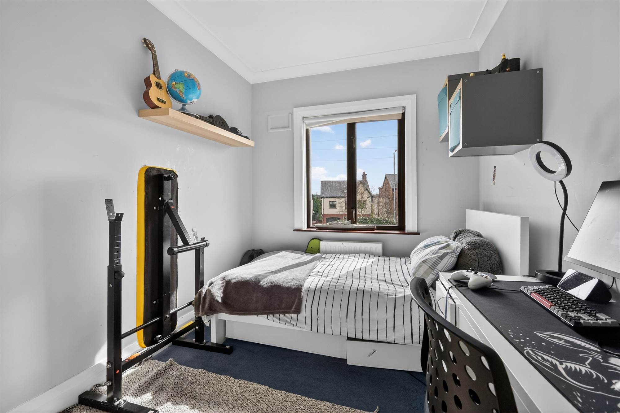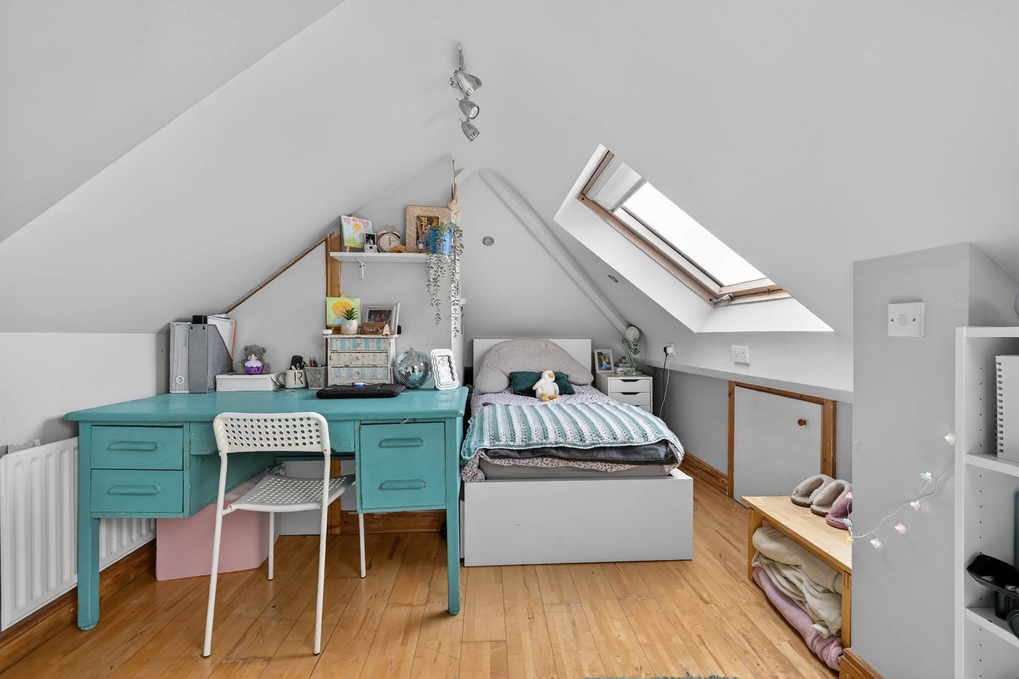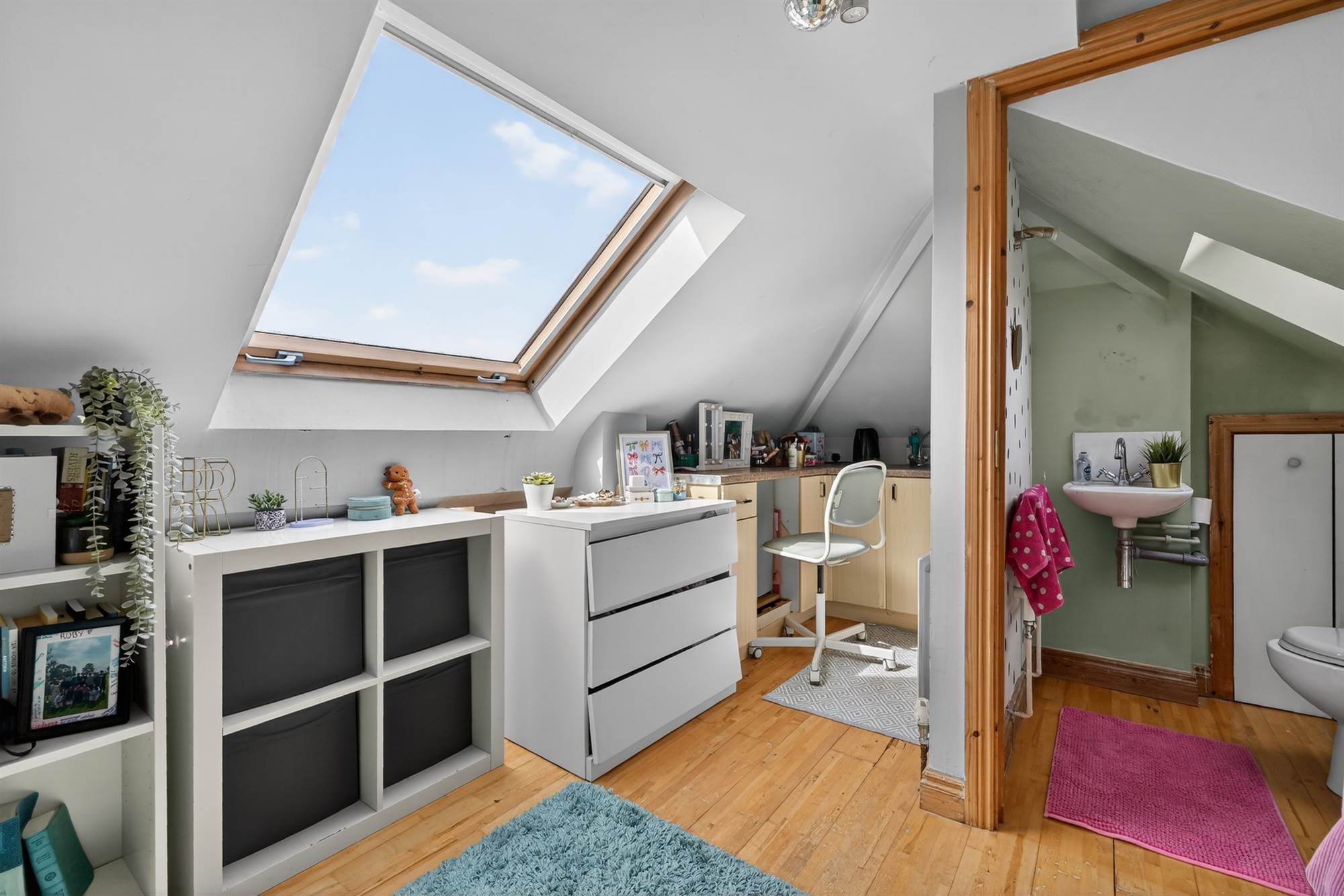 Versatile second floor fifth bedroom or study with kitchenette, wash facilities, and extensive eaves storage