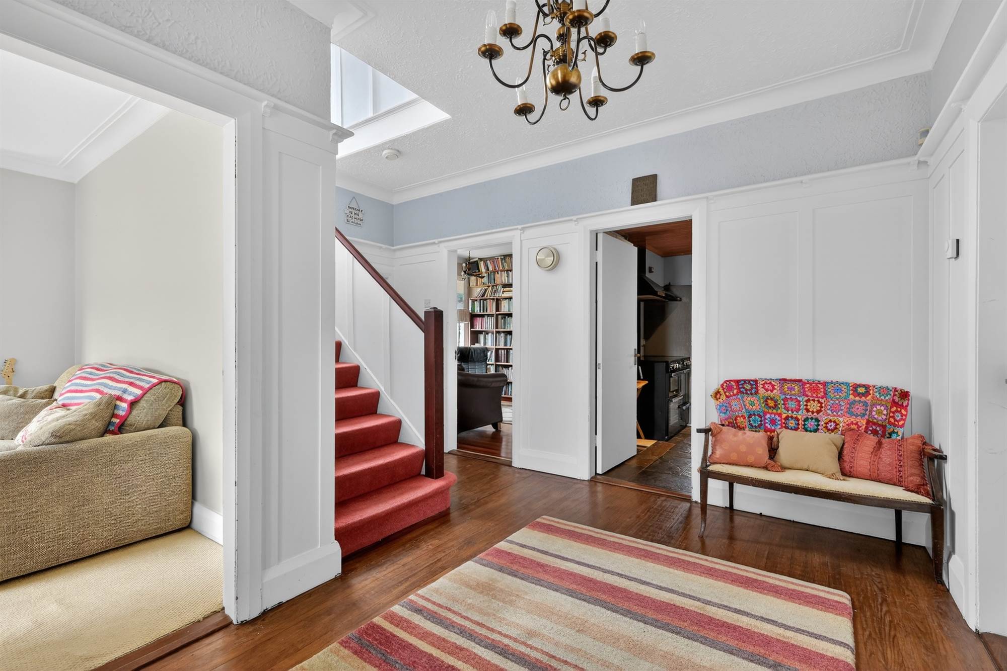 Retains many original features including solid wood flooring, decorative panelling, and feature fireplaces throughout