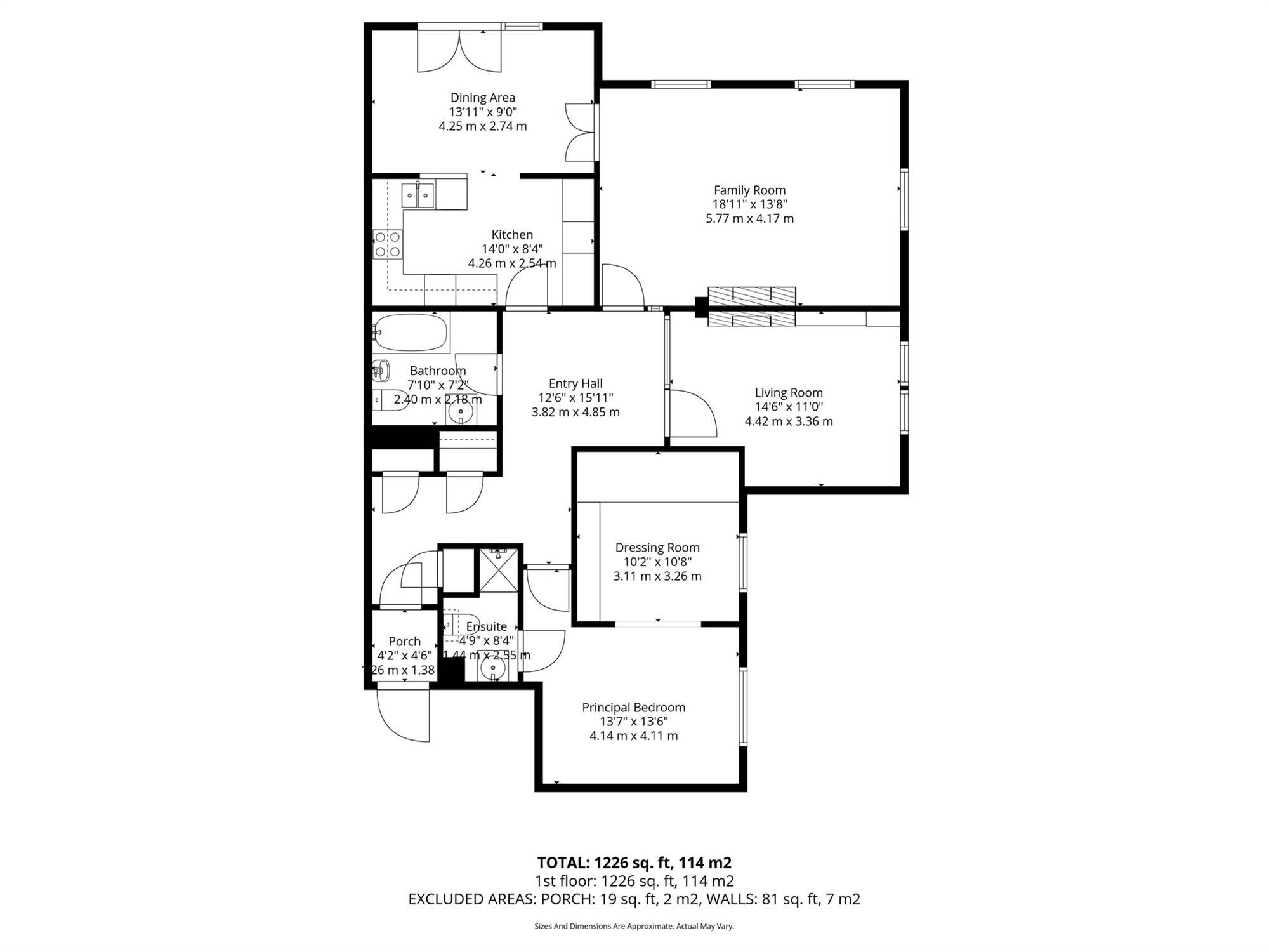 (at widest points). Attractive wood fireplace with tiled inset and hearth, electric fire, cornice ceiling. Built-in units, gas boiler.