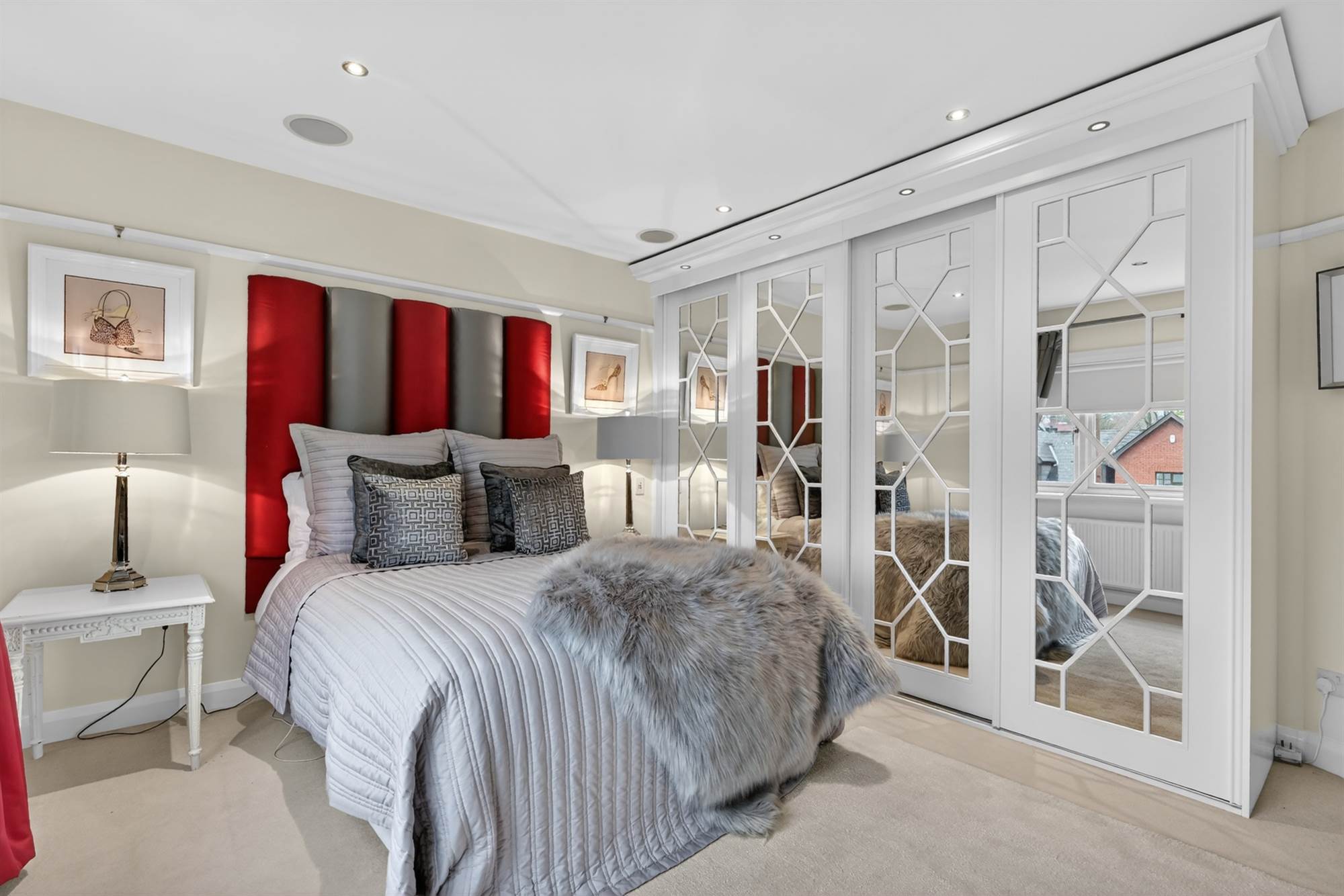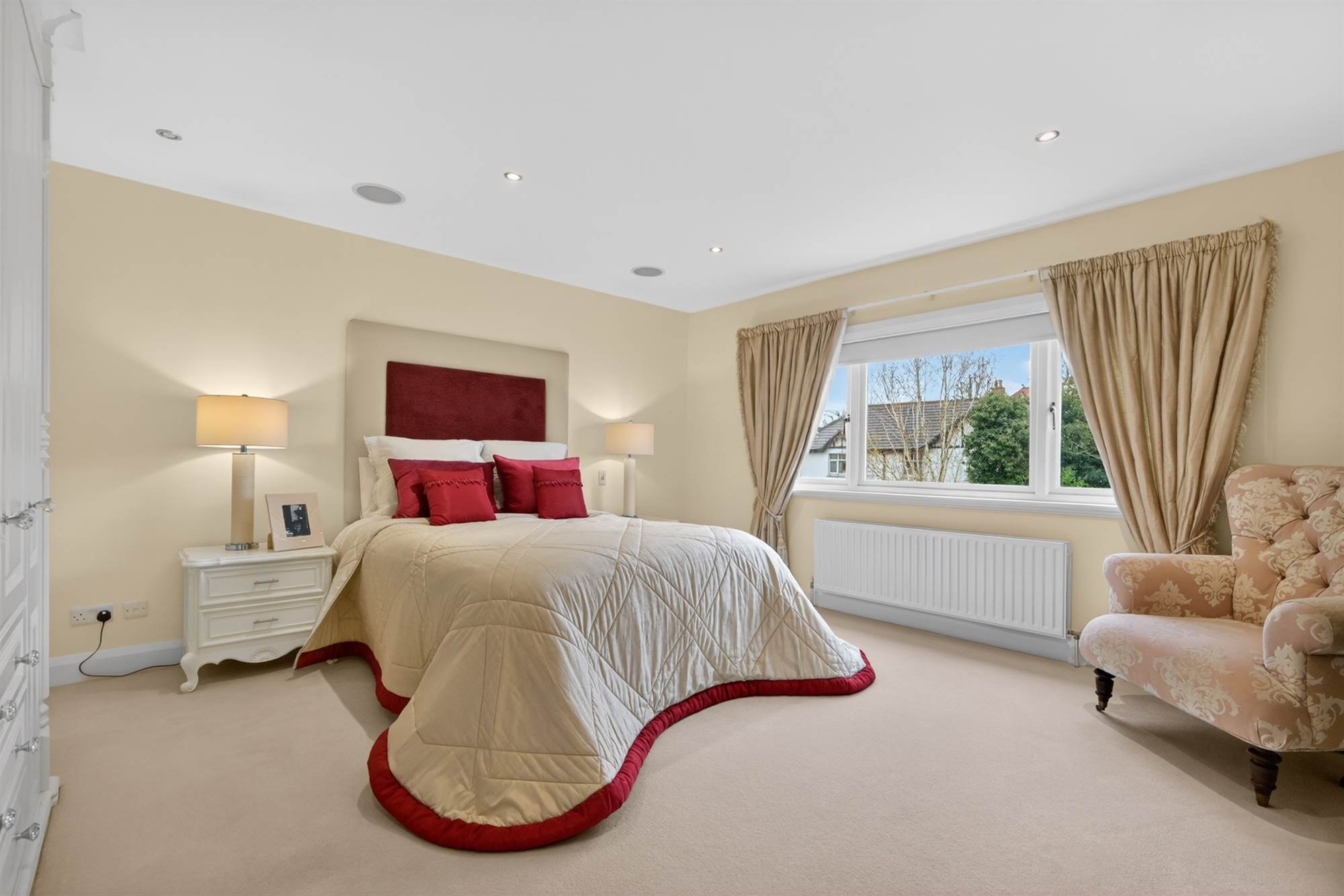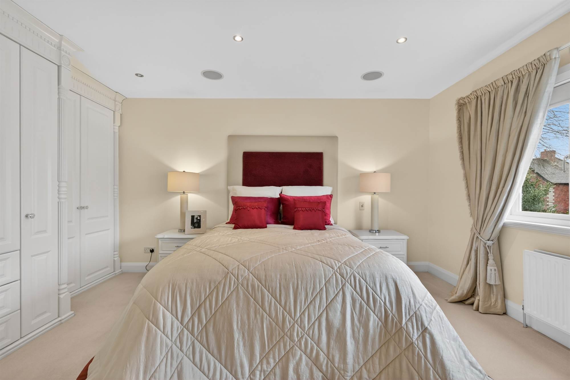 (at widest points). Range of built-in wardrobes, low voltage spotlights, surround sound.