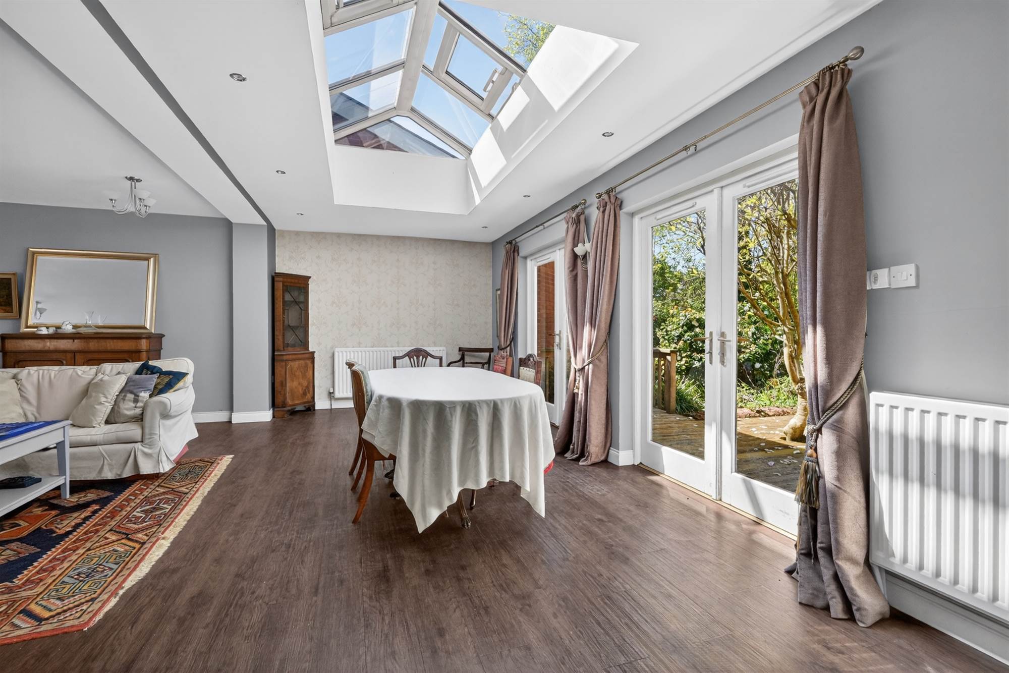 Offering deceptively spacious accommodation, the home comprises five well-proportioned bedrooms and superb open-plan living and dining space, complete with twin double doors opening onto the garden. Additional living areas include comfortable sitting room, and a dedicated study.
