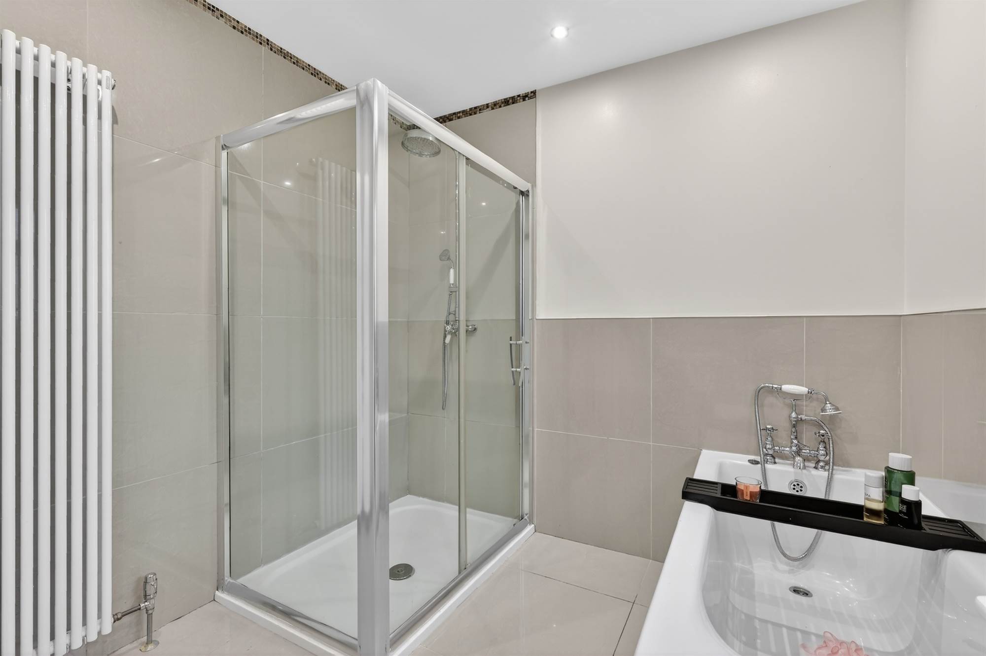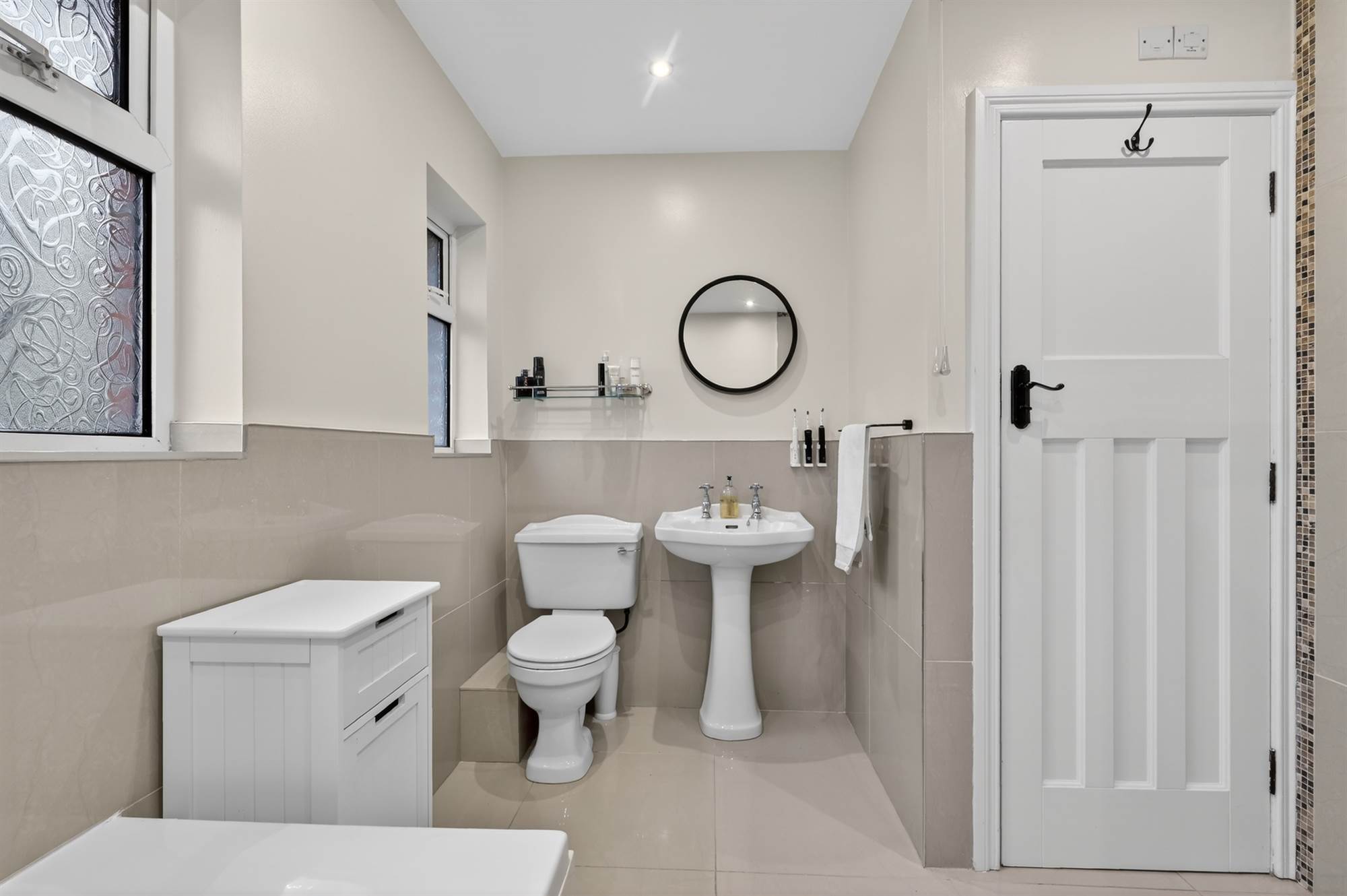 Stylish family bathroom with complementary tiling