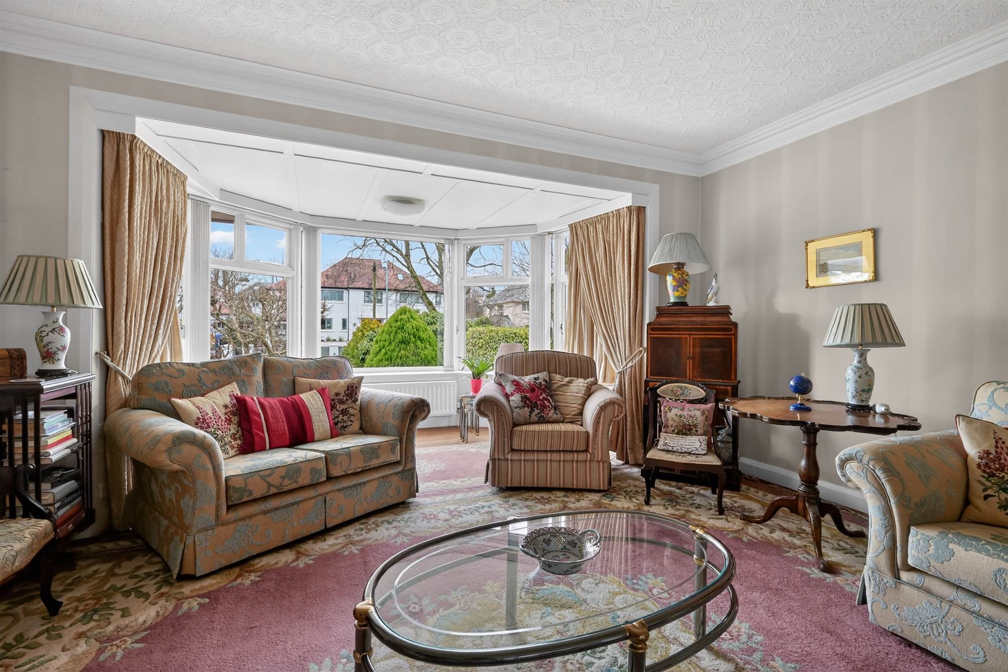 (at widest points into bay). Cornice ceiling, bay window.
