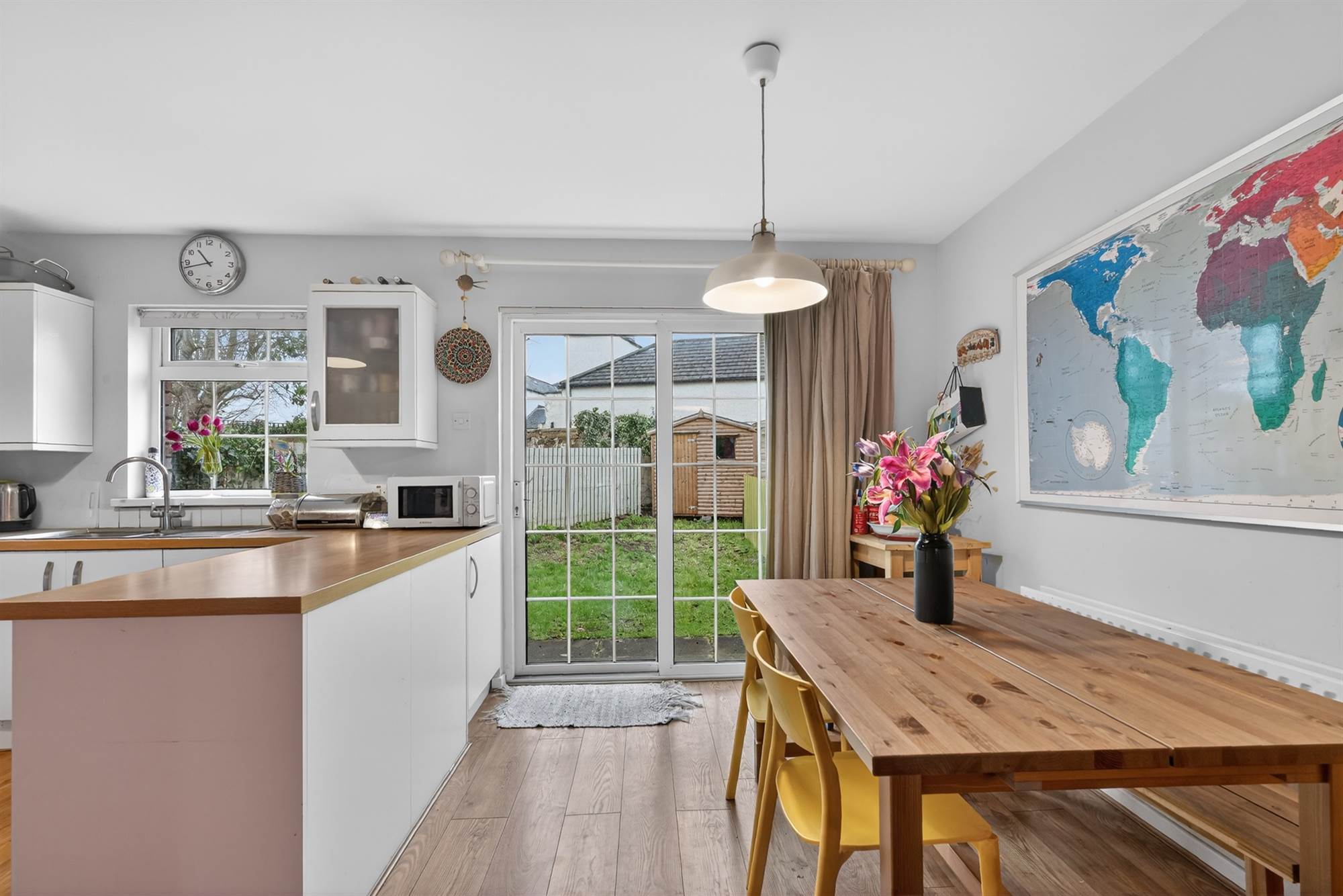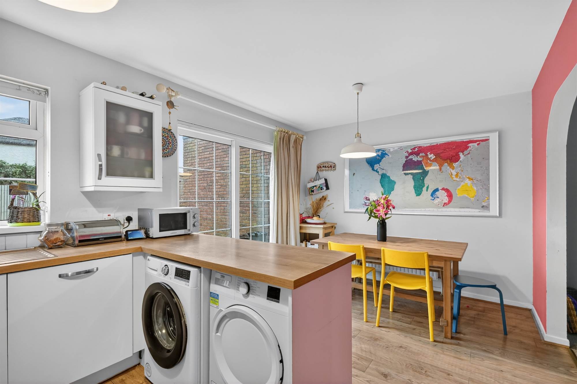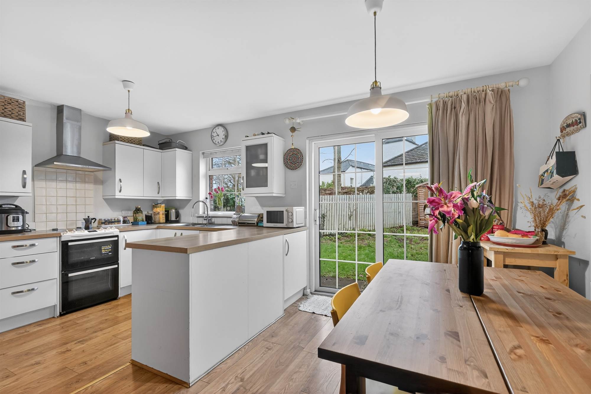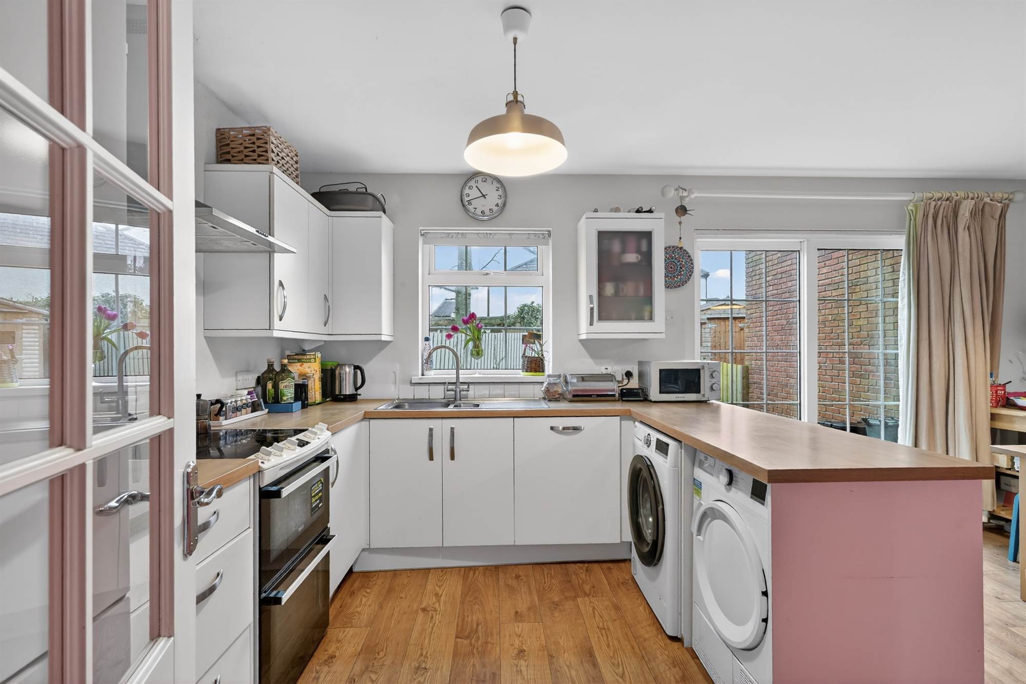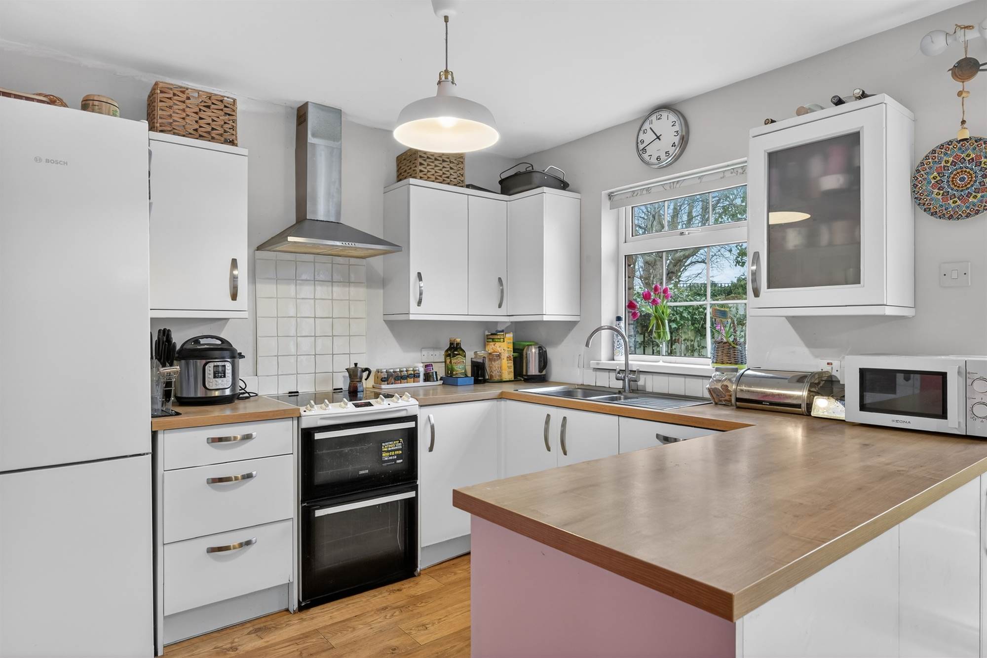 Excellent range of modern high and low level units, single drainer stainless steel sink unit, space for fridge freezer, space for cooker, stainless steel canopy and fan, plumbed for washing machine, space for tumble dryer, sliding patio door to rear garden.