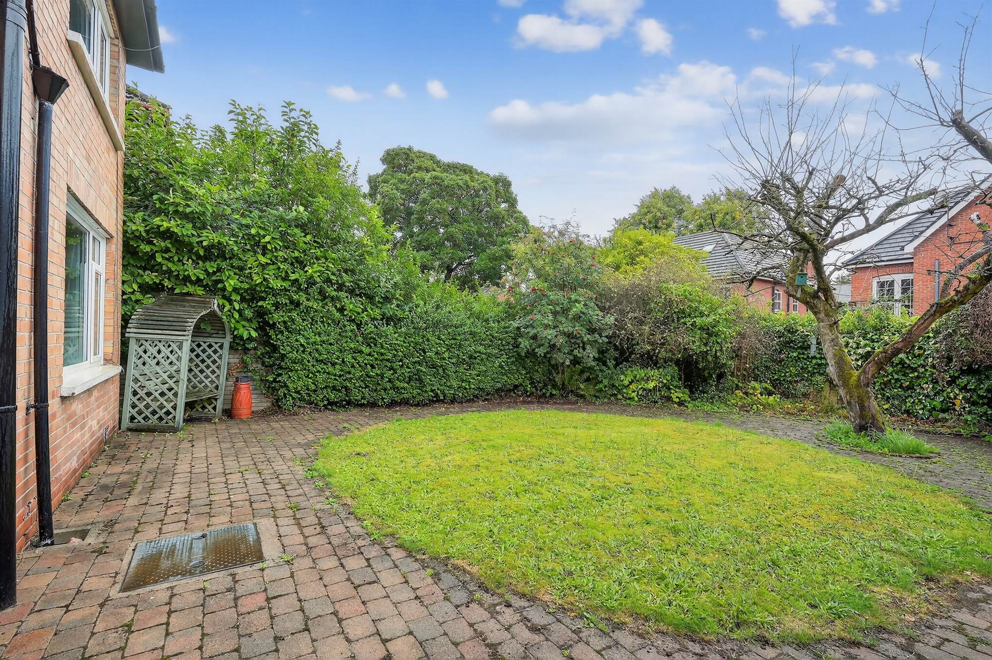 Front Beds and South Facing Rear Gardens in Lawns with Paved Patio Area and Mature Apple Trees