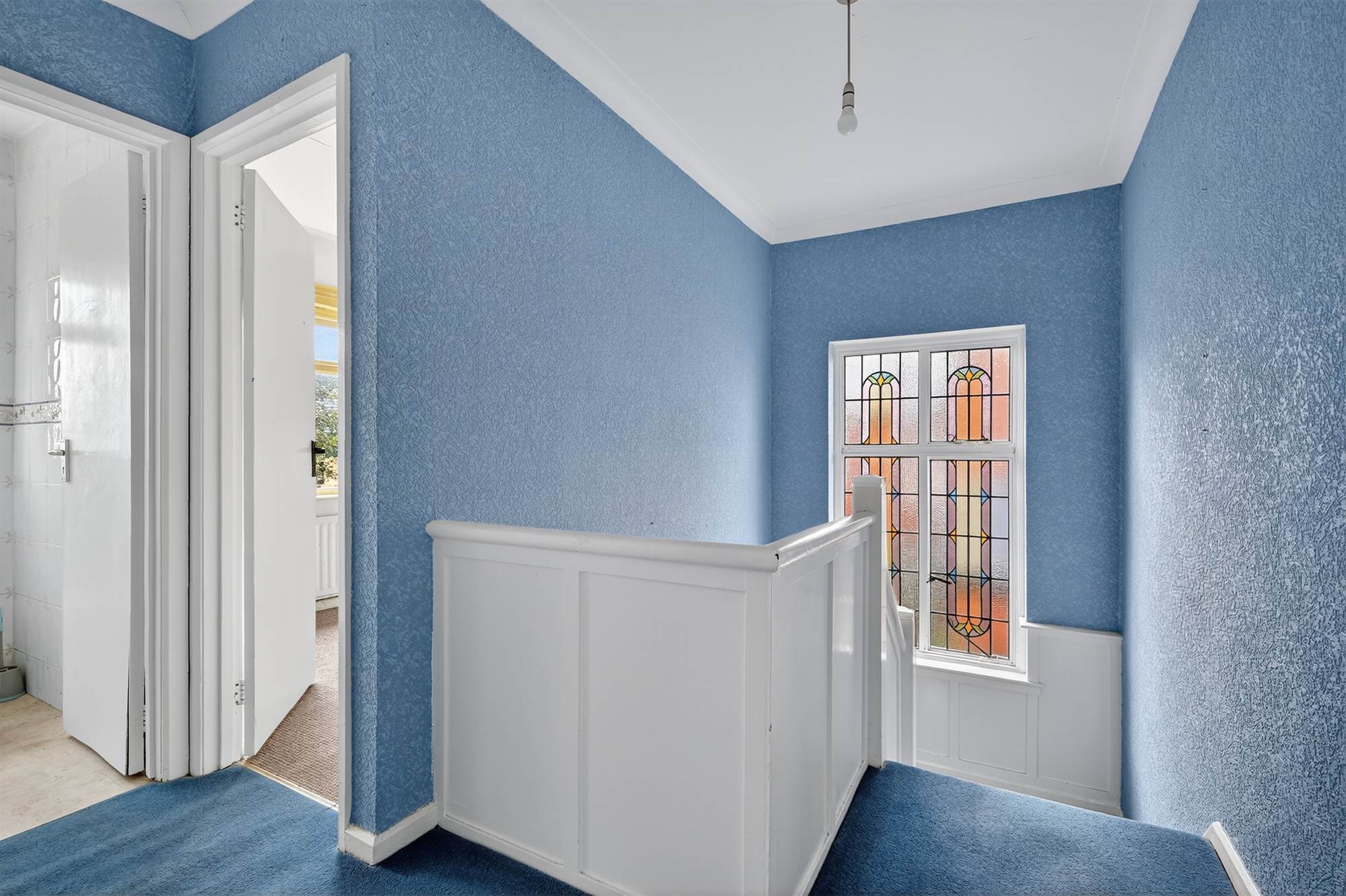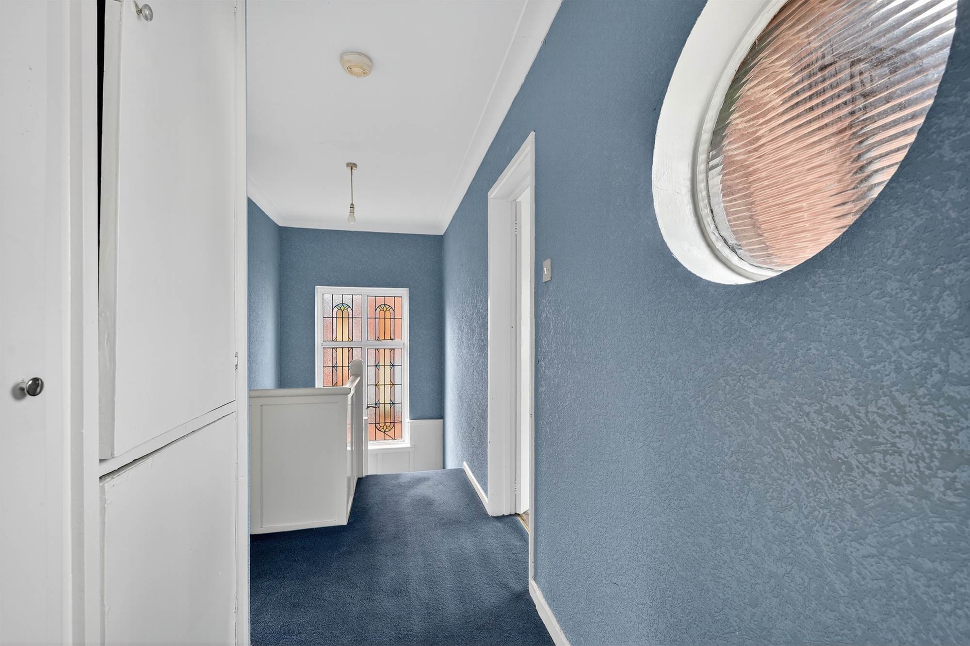 Stained glass window, hotpress. Access to roofspace.