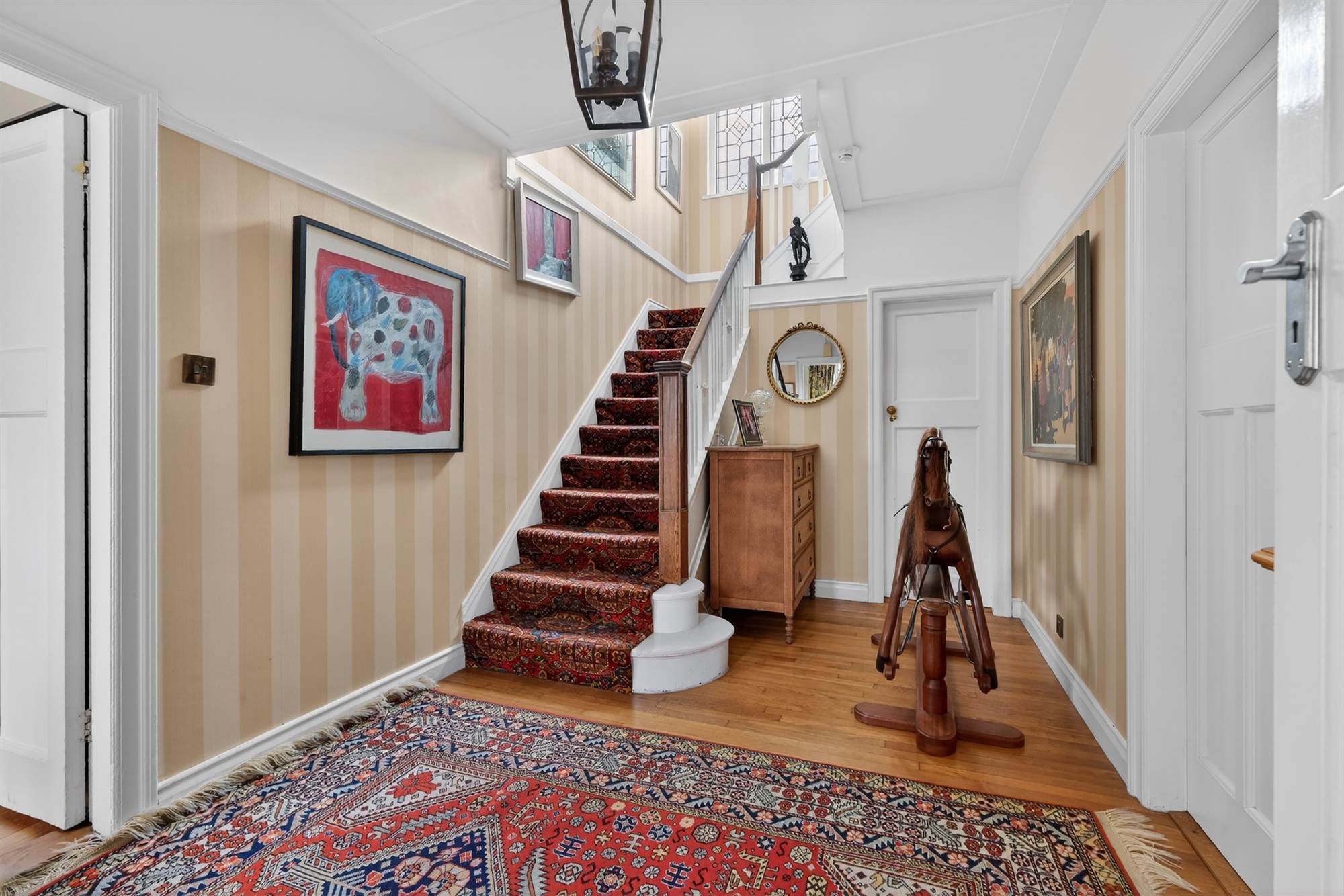 Original terrazzo stone floor, glazed leaded side light. Glazed inner door to . . .