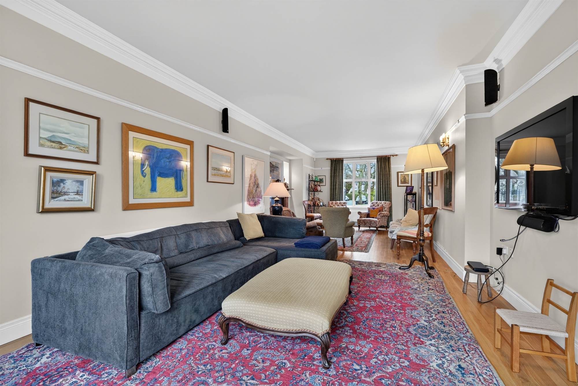 The accommodation flows on the ground floor with four reception rooms that lead into the extended kitchen and dining room overlooking the gardens.