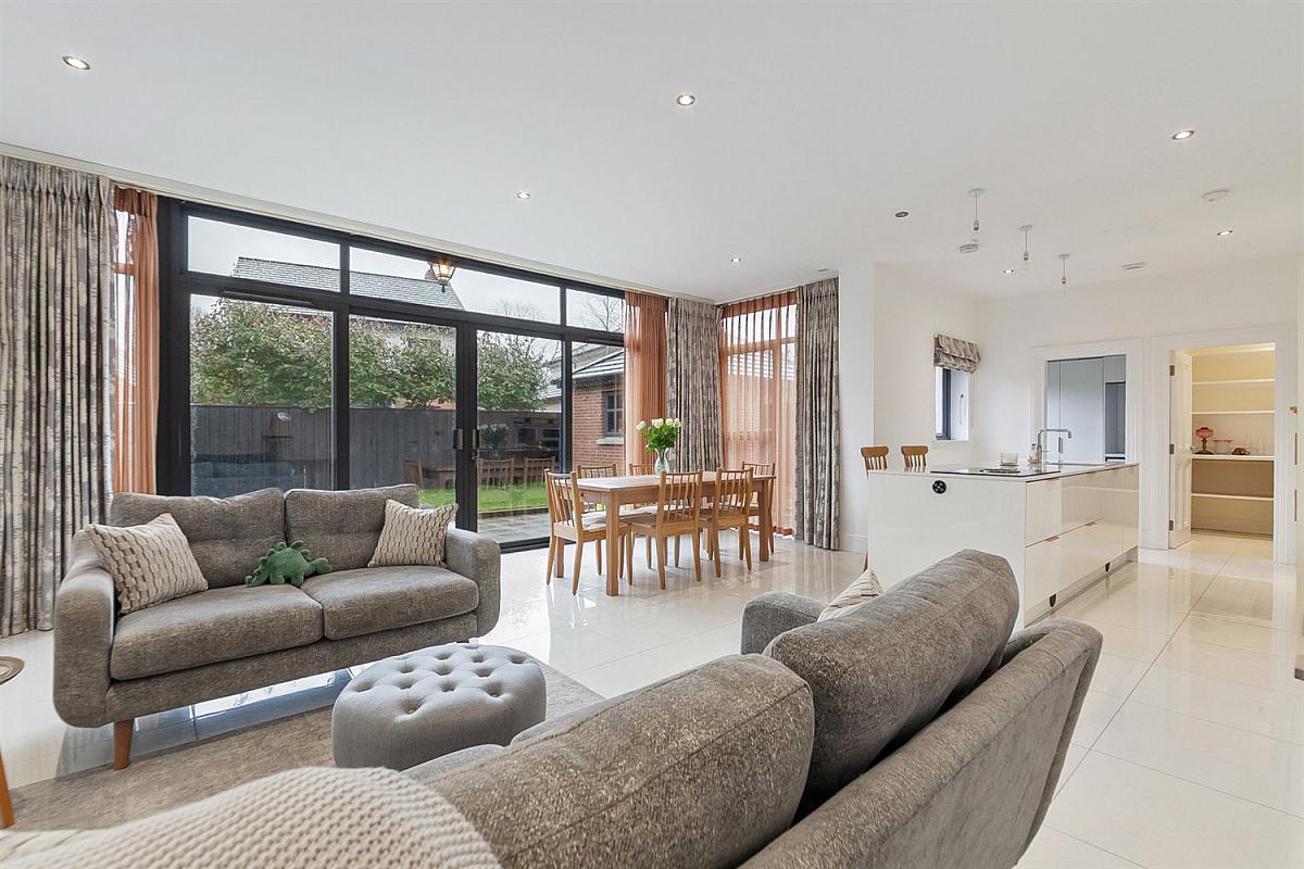 The internal accommodation comprises of spacious entrance hall with cloakroom, large open plan kitchen, living and dining area, generous lounge and separate formal dining room. The high specification kitchen offers an excellent selection of contemporary high and low level fitted units with integrated appliances.