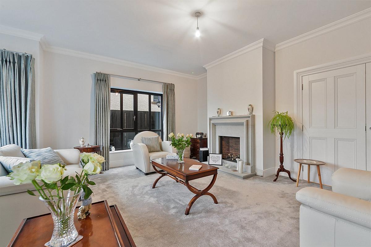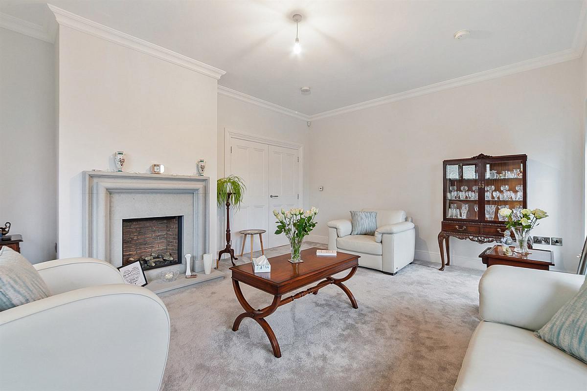 Cornice ceiling. Natural honed grey limestone fireplace complete with highly efficient and effective Riva 2 600 glass fronted gas fire, brick interior lining and remote control.