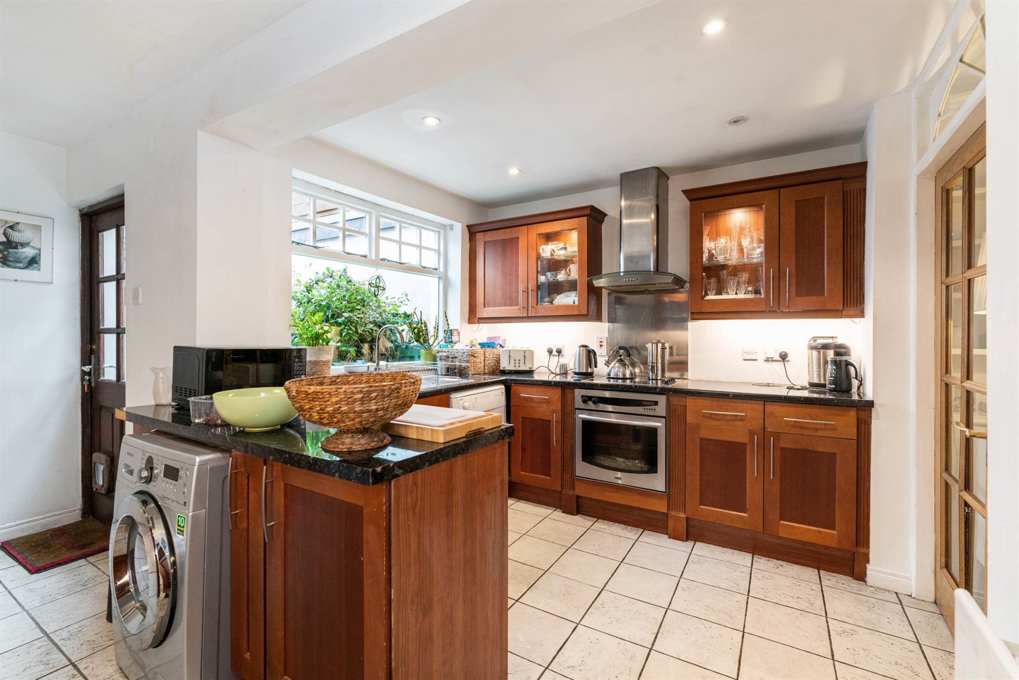 Excellent range of high and low level units, glass display cabinets, under unit lighting, 1/2 bowl stainless steel sink unit with mixer tap. Integrated four ring hob and stainless steel integrated oven and stainless steel and glass extractor fan over. Plumbed for washing machine, recess for fridge freezer and ceramic tiled floor.