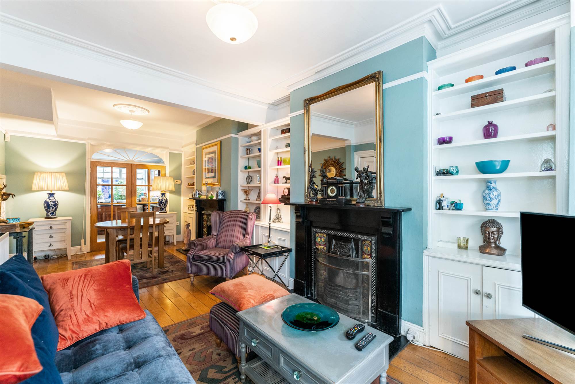 Two slate fireplaces with tiled insets and tiled hearth. Solid Oak wood flooring. Understairs storage cupboard. Cornice ceiling, picture rail and built-in book cases. French doors to...