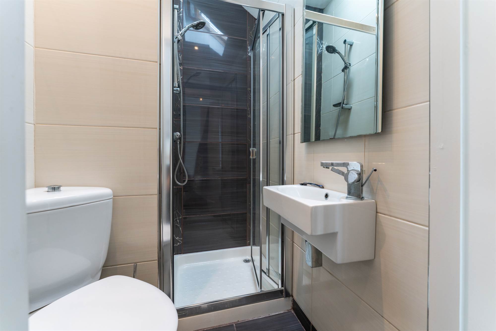Fully Tiled Shower Enclosure, low flush WC, wash hand basin