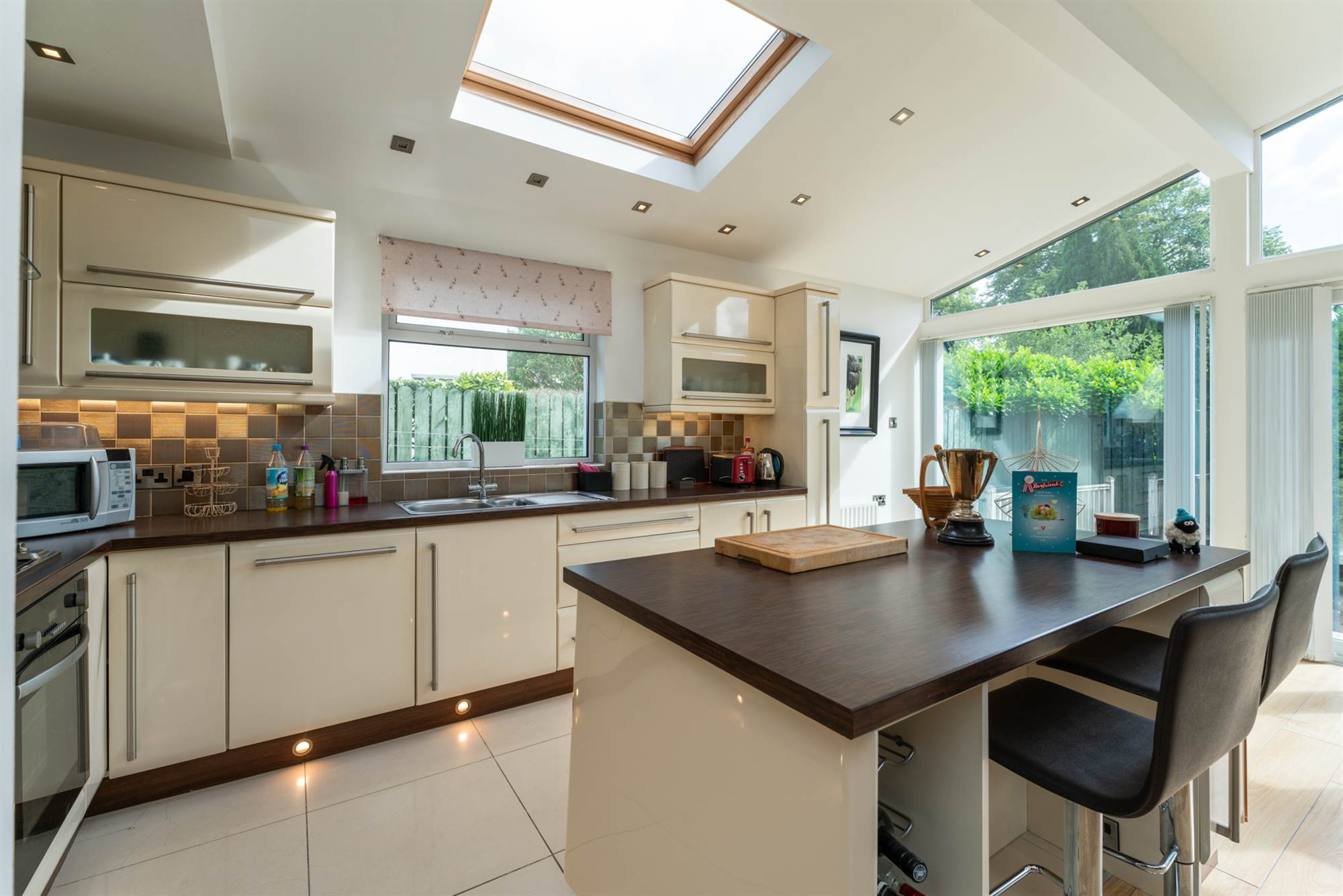 Kitchen - High and Low Level units, central island unit, inset sink, 4 ring gas hob, electric oven, integrated fridge freezer, dishwasher, , tiled floor