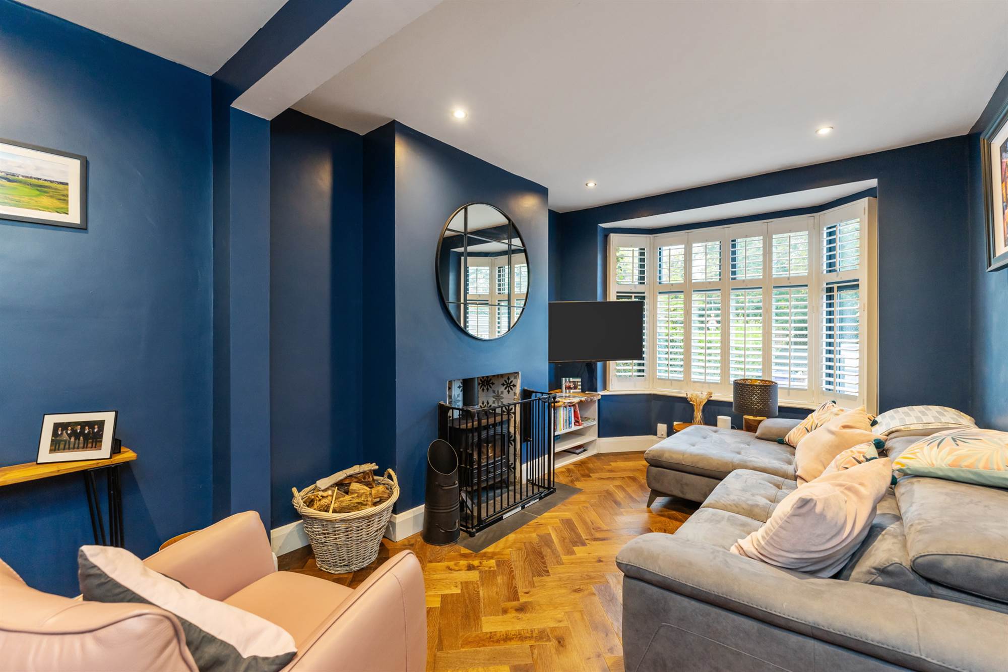 Lounge With Bay Window And Contemporary Multi-Fuel Stove With Tiled Surround