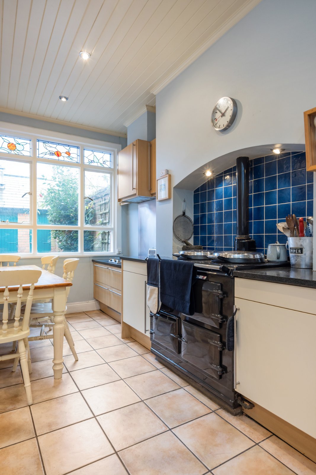 Excellent range of units, granite worktops, gas fired Aga, 2 ring gas hob, integrated dishwasher, leading to: