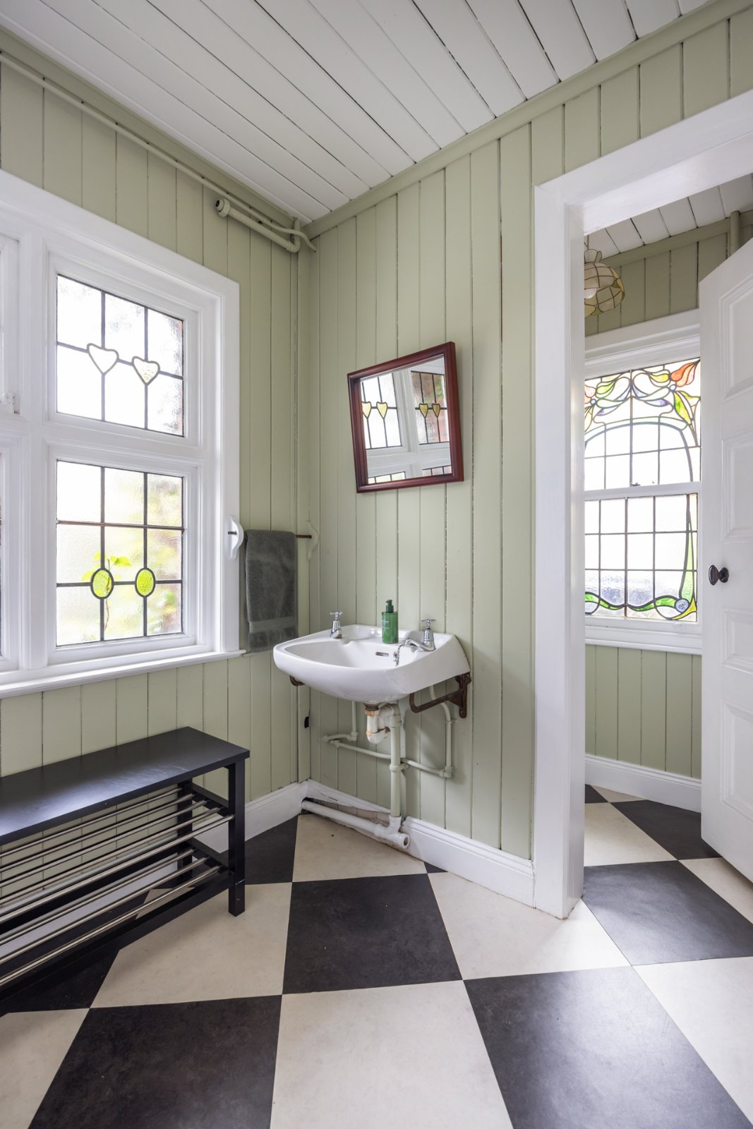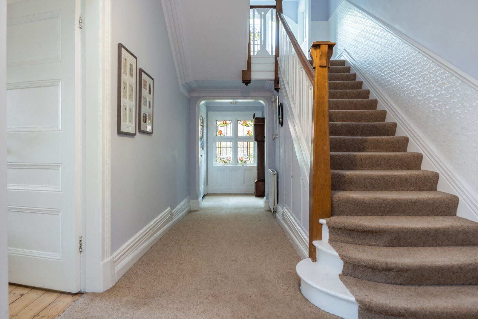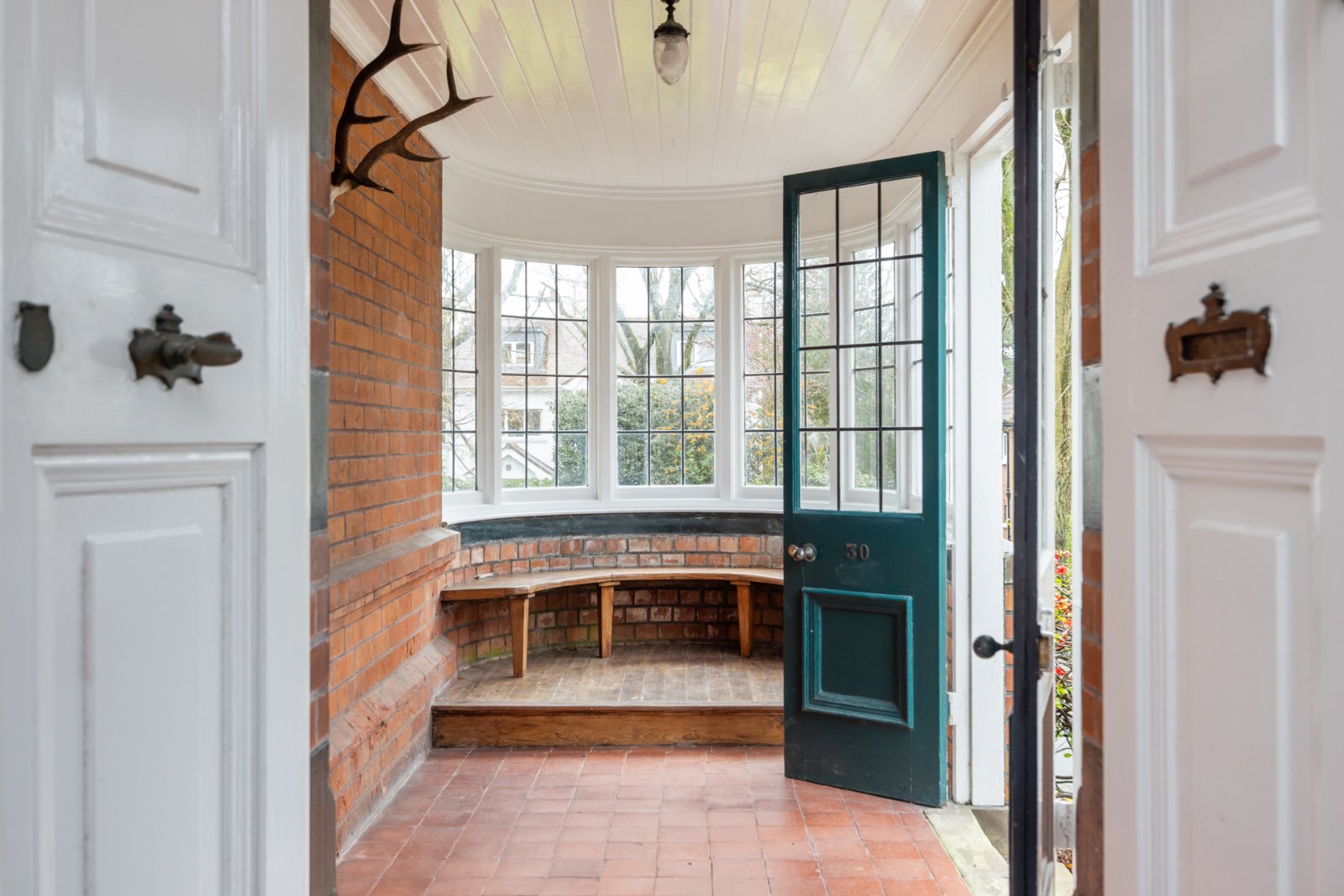 Feature bay window, wooden and glazed inner door to Reception Hall