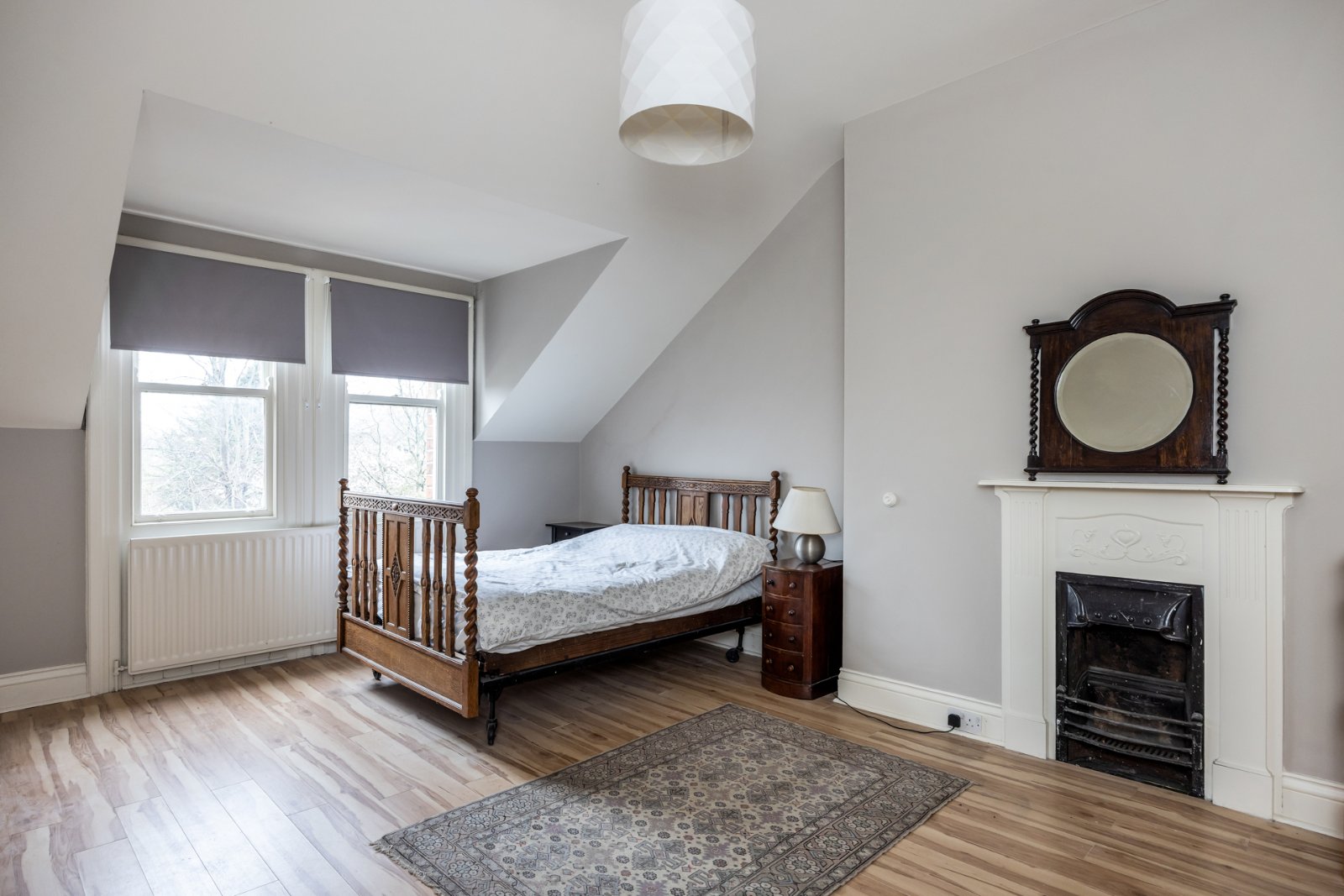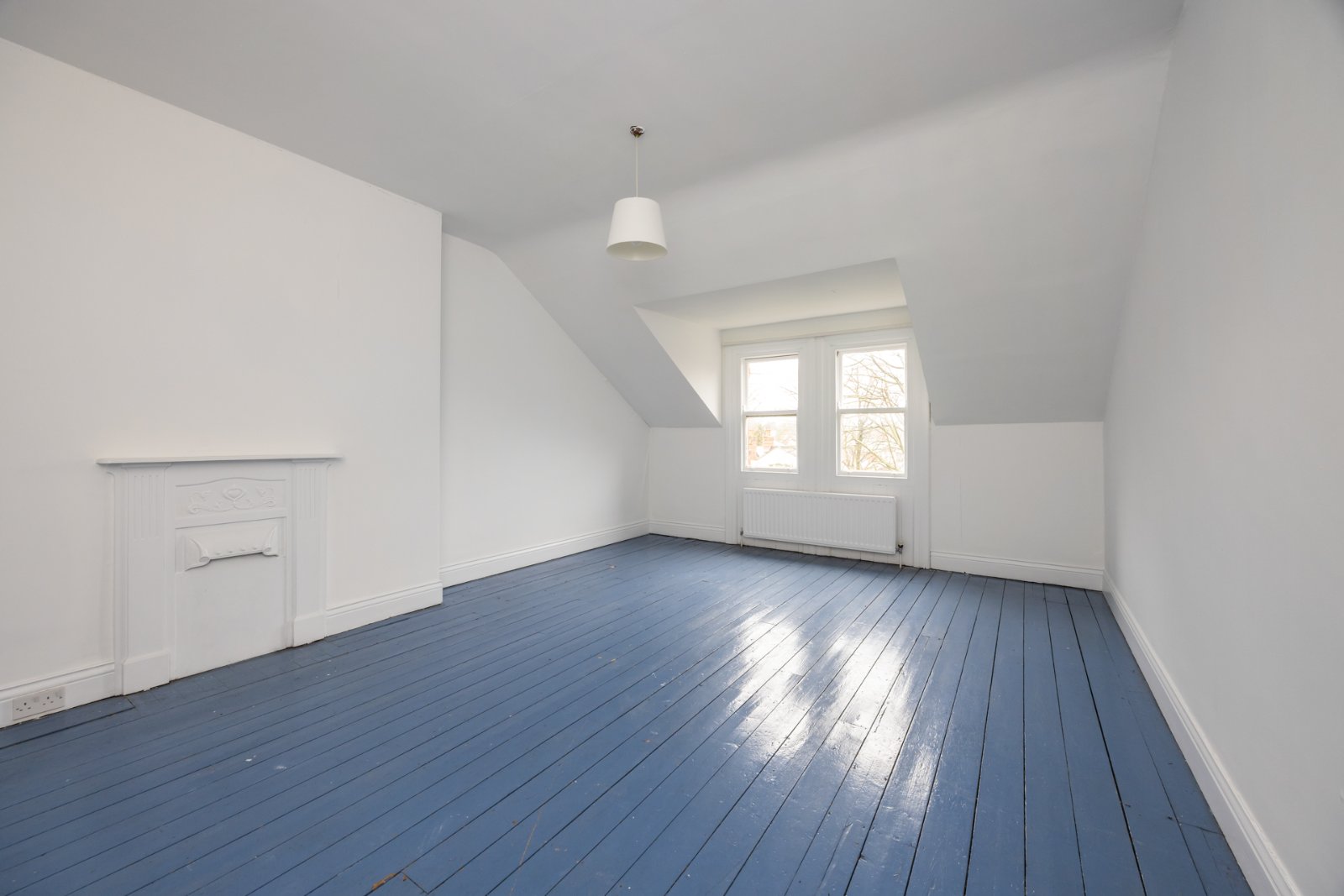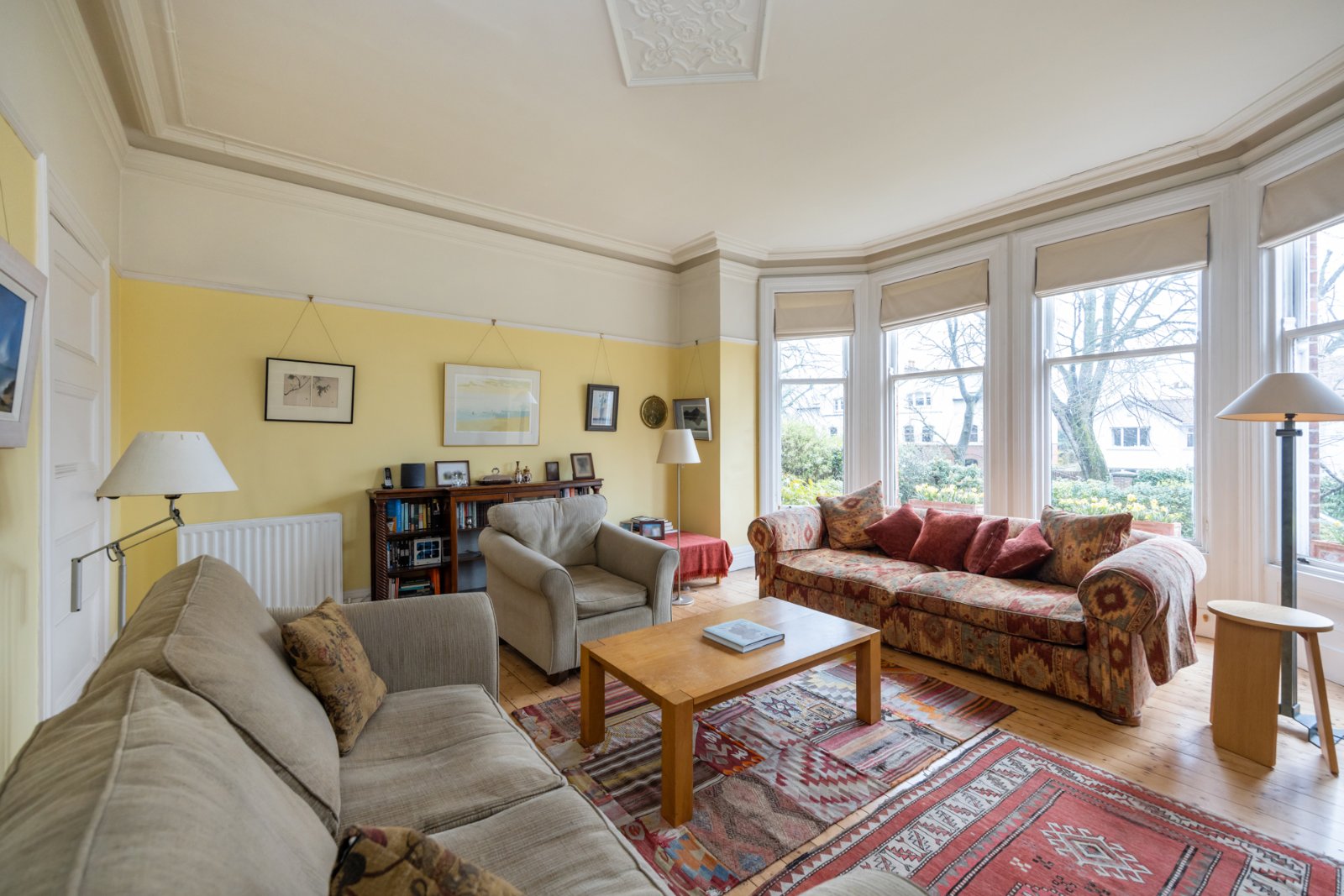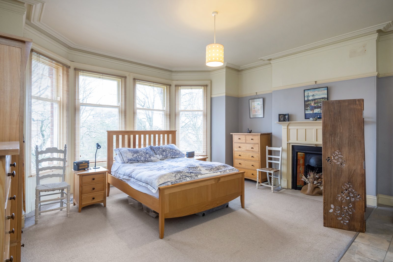 Wood block flooring, cornice ceiling and picture rail