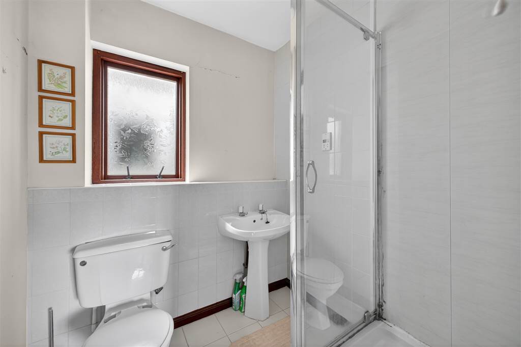 Ensuite comprising of Triton Shower, shower screen, low flush wc, wash hand basin, 3/4 tiled walls and tiled floor.