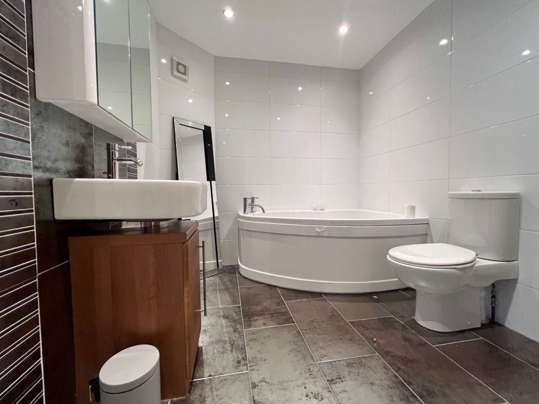 The main bathroom, which doubles as an ensuite to the main bedroom, is comprised of an attractive four-piece suite to include a corner jacuzzi bath, wash-hand basin, a w/c and a corner shower. The bathroom boasts fully tiled floors and walls.