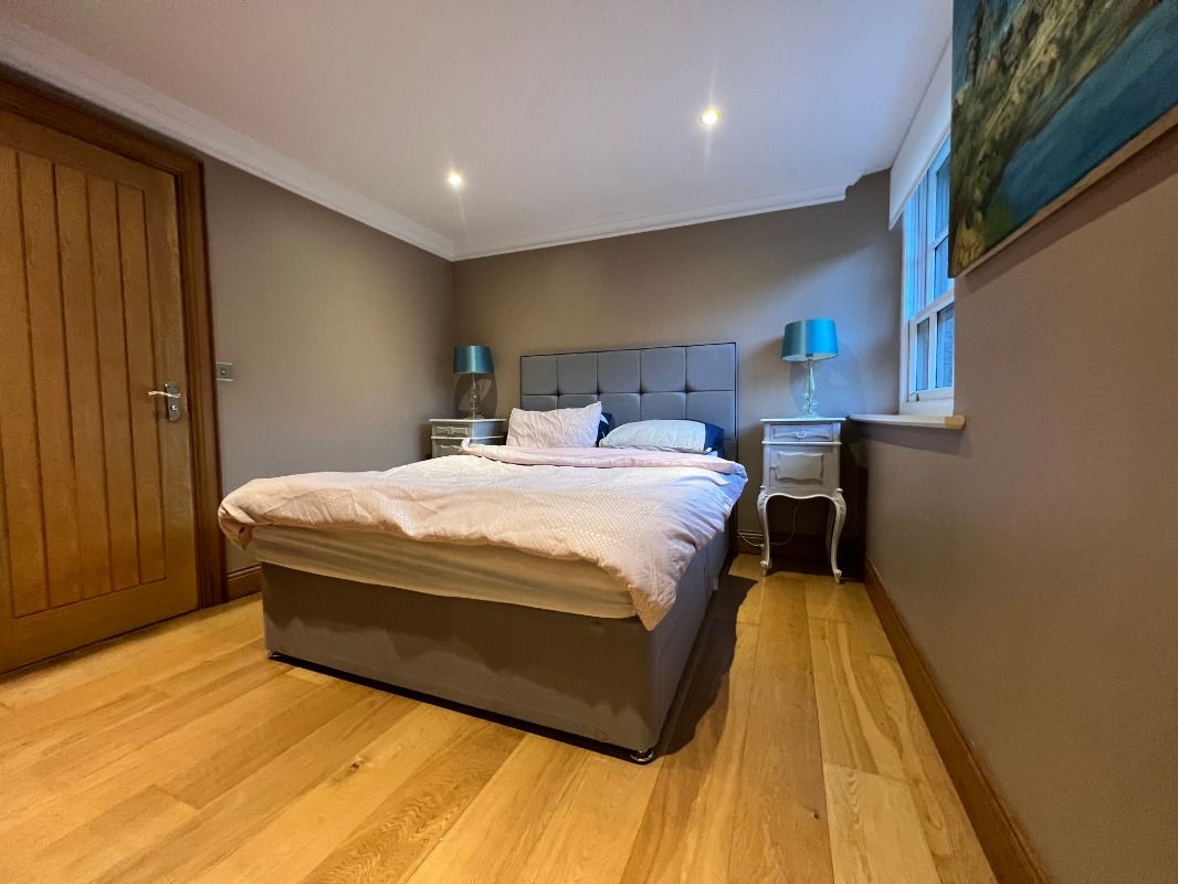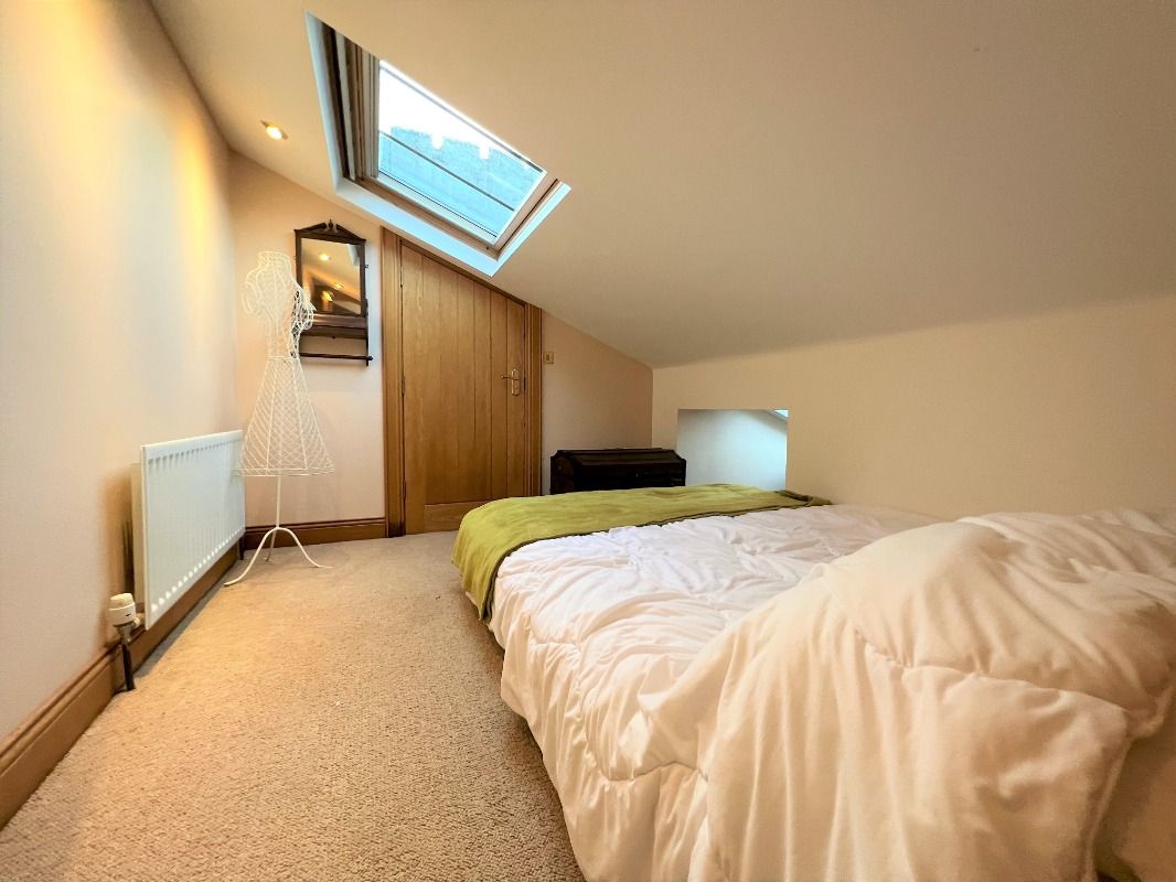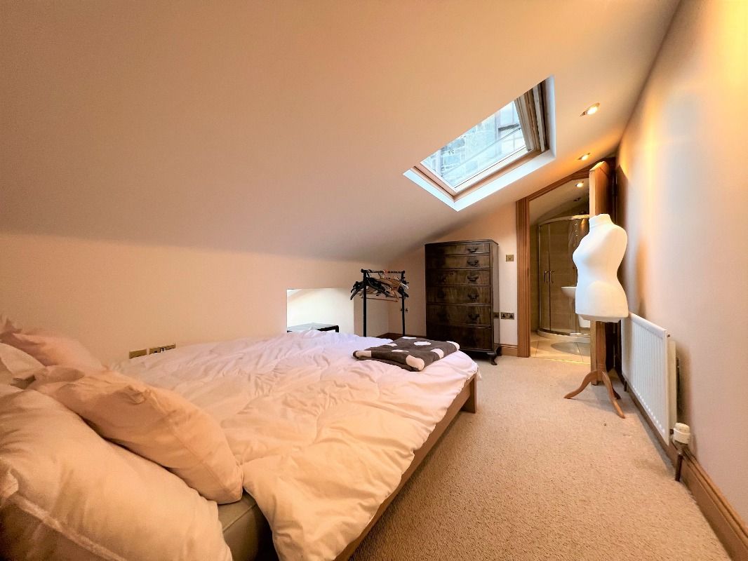The second first-floor bedroom is a carpeted double room with access to an ensuite bathroom. The room features a single-panel radiator and electrical points throughout.