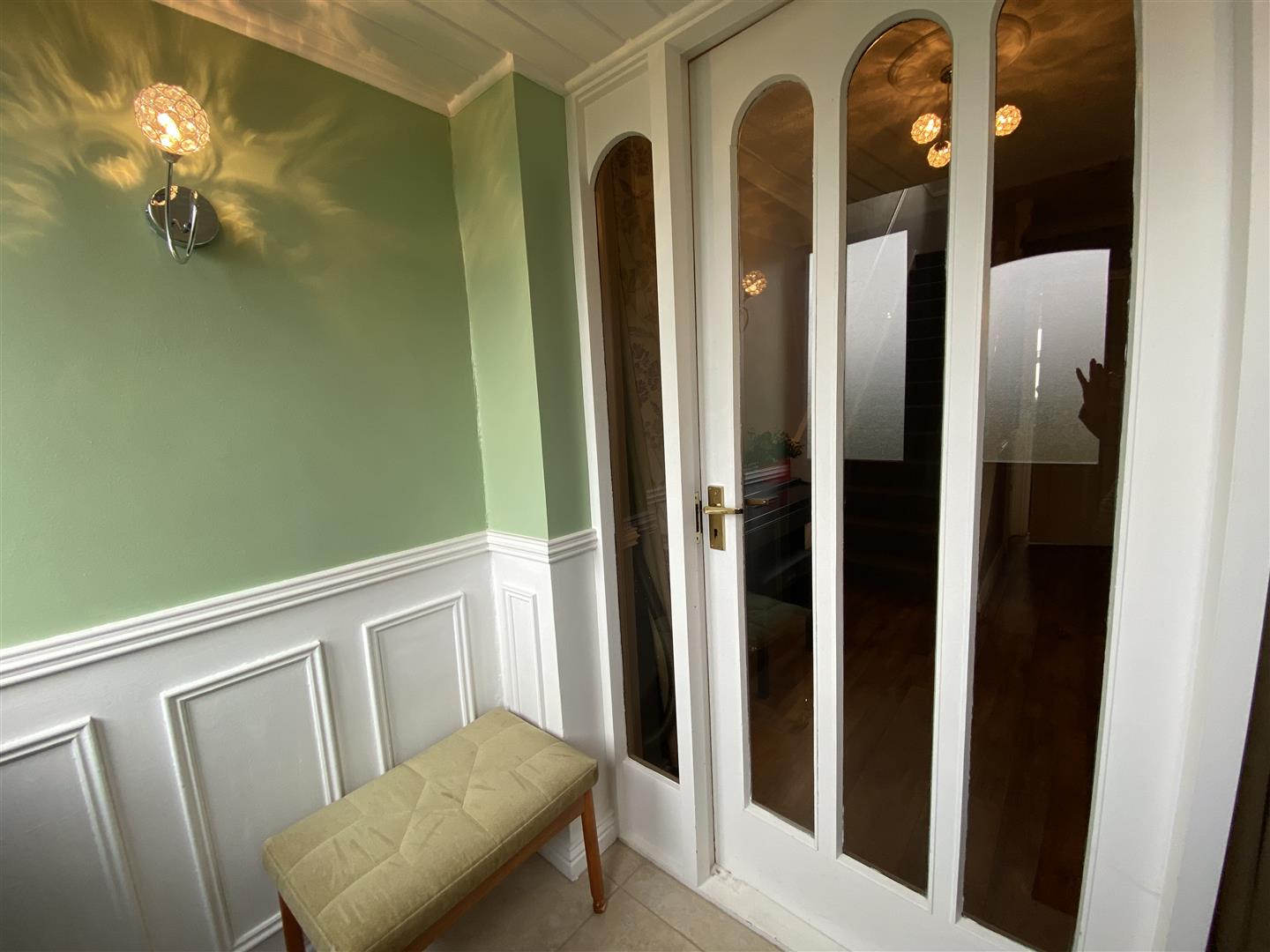 Having tiled floor, 1/2 height wooden panelled walls.