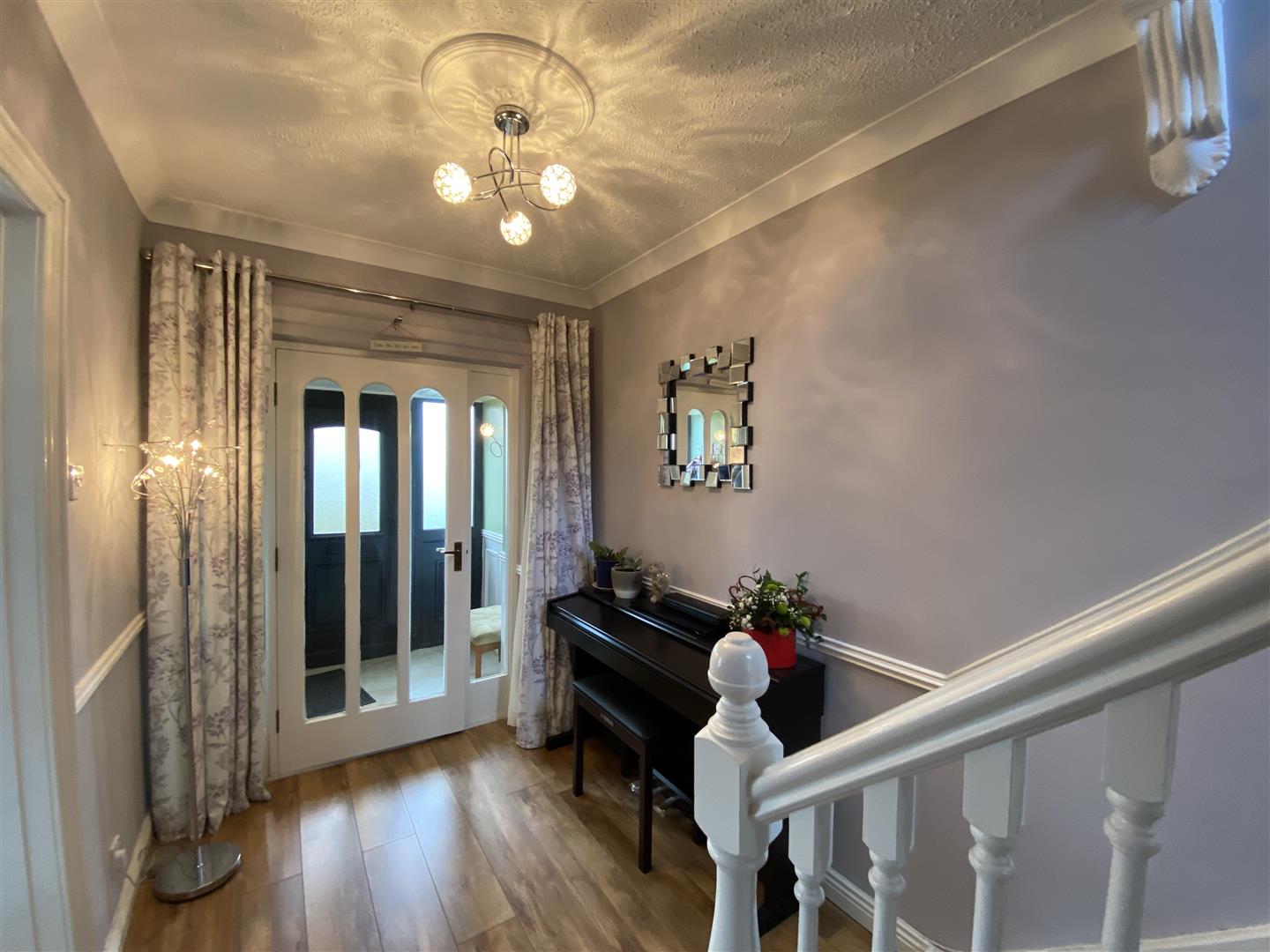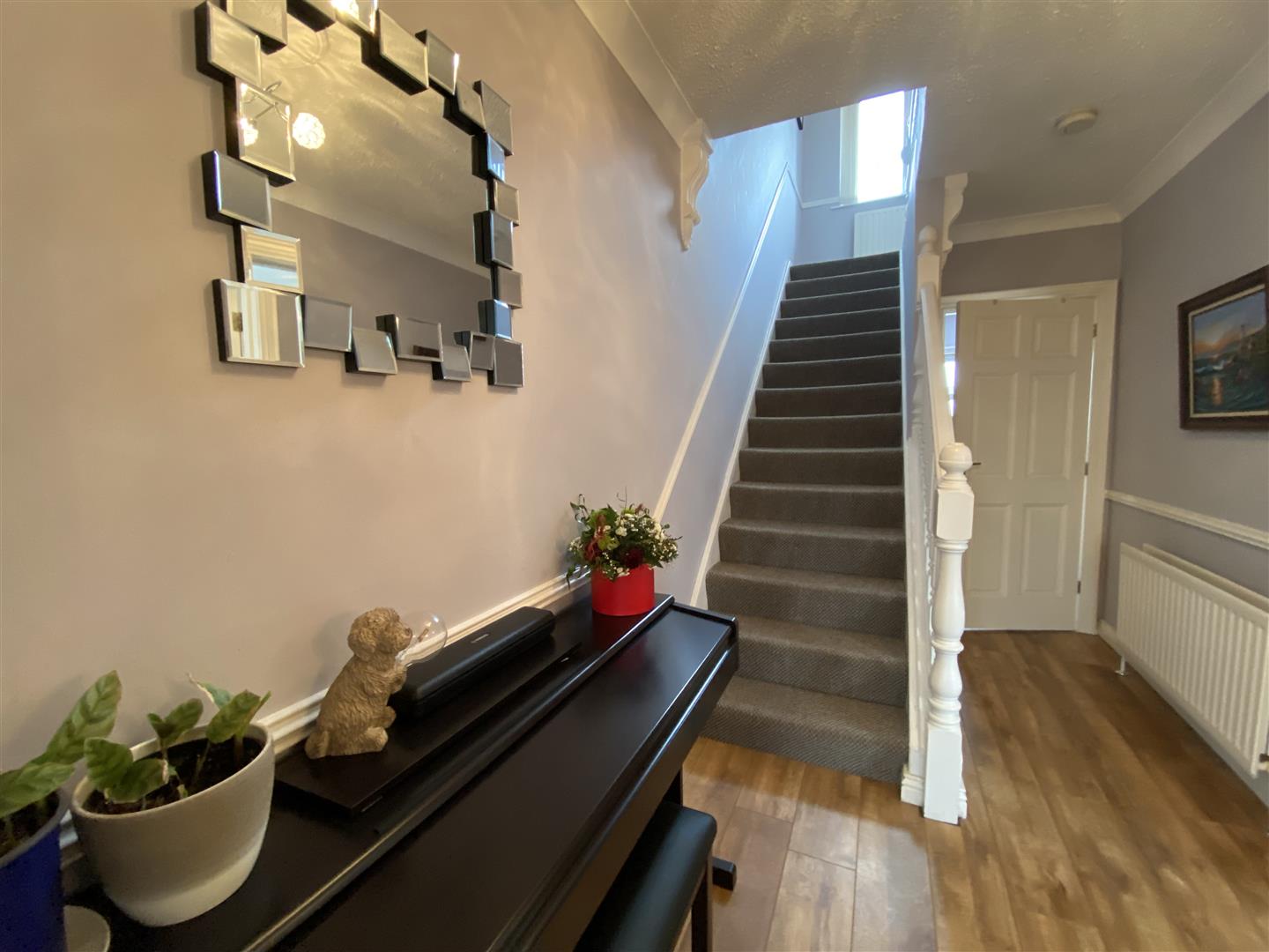 Having ceiling cornicing, understairs storage, laminated wooden floor.