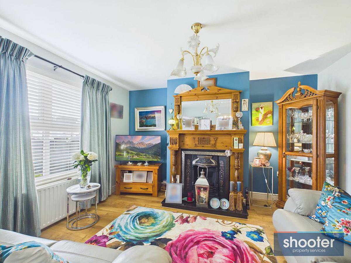 Feature open fire place with decorative inset, tile hearth, wooden surround, mantel and mirror. Television and telephone points. Laminate floor.