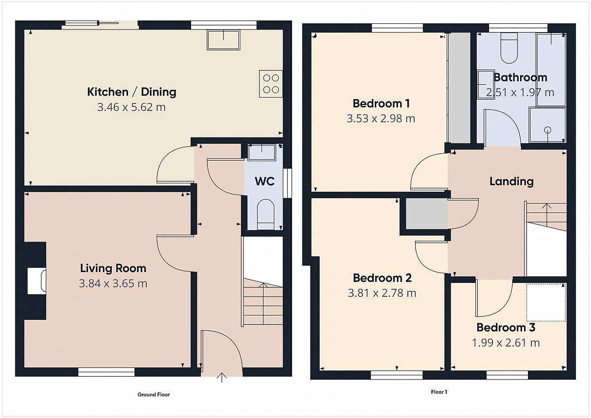 Bedroom 1 11'7'' X 9'9'' (3.53m X 2.98m)