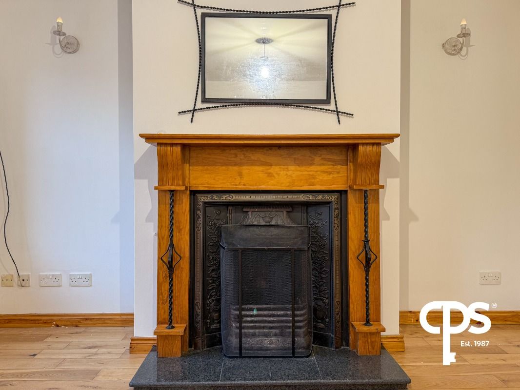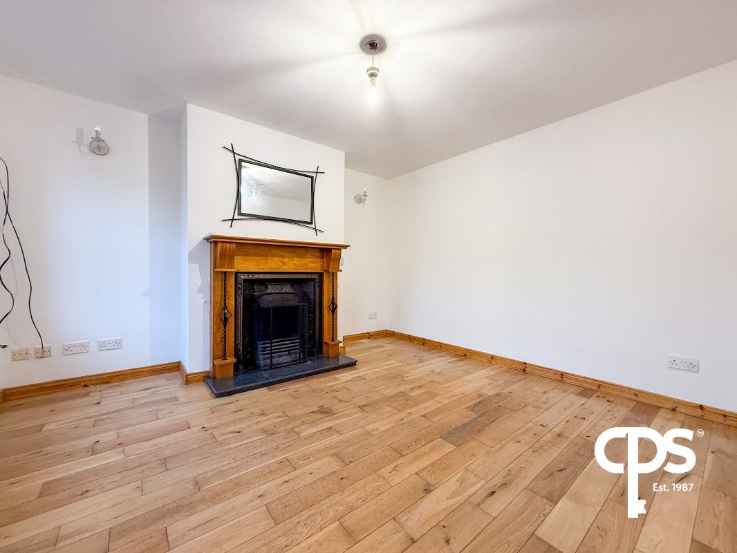 A bright front-facing reception room featuring solid wooden flooring, an open fire with wooden surround and marble hearth, and a back boiler. The room further benefits from a newly installed double radiator and enjoys pleasant views to the front of the property.
