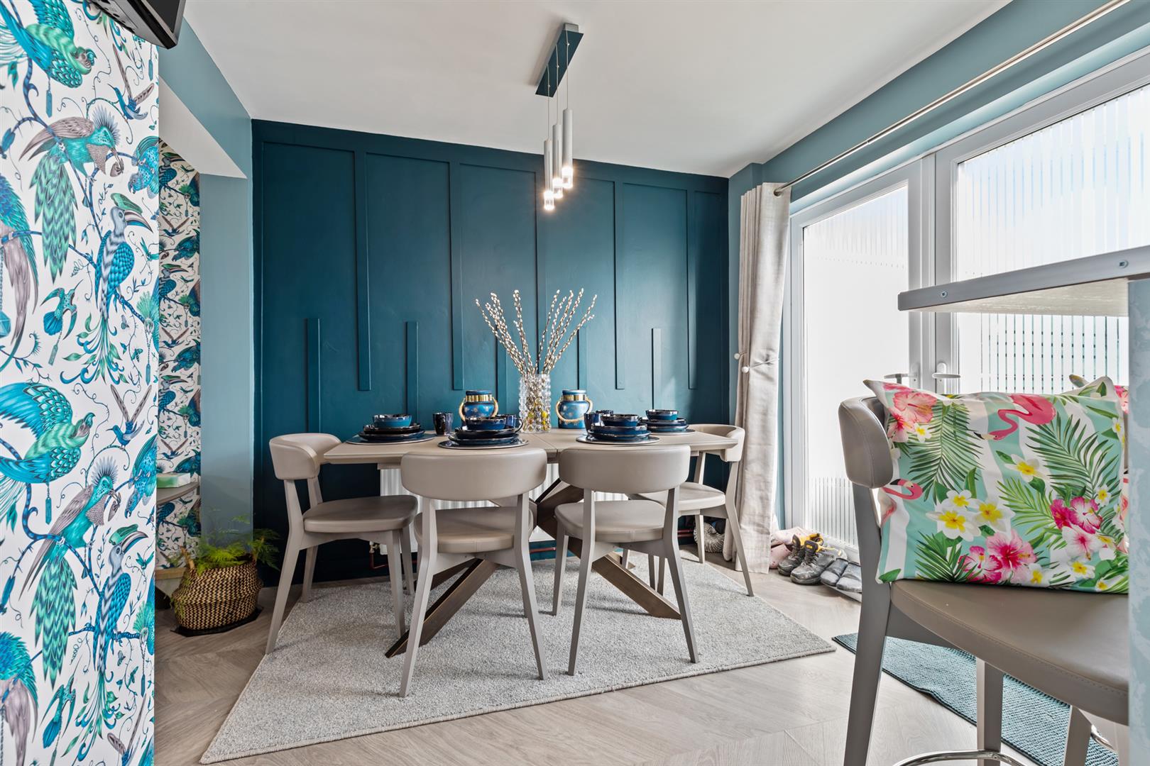 The accommodation comprises a welcoming Entrance Hall with wood laminate flooring and cloak space. The living room features wood laminate flooring and a bright outlook. The kitchen/dining Room is fitted with a modern range of high and low level units, laminate work surfaces, single sink unit with mixer tap and drainer, integrated dishwasher, integrated oven, four ring gas hob, space for fridge/freezer, larder cupboard and breakfast bar. There is ample space for dining, wood laminate flooring and double patio doors leading to the enclosed rear garden.