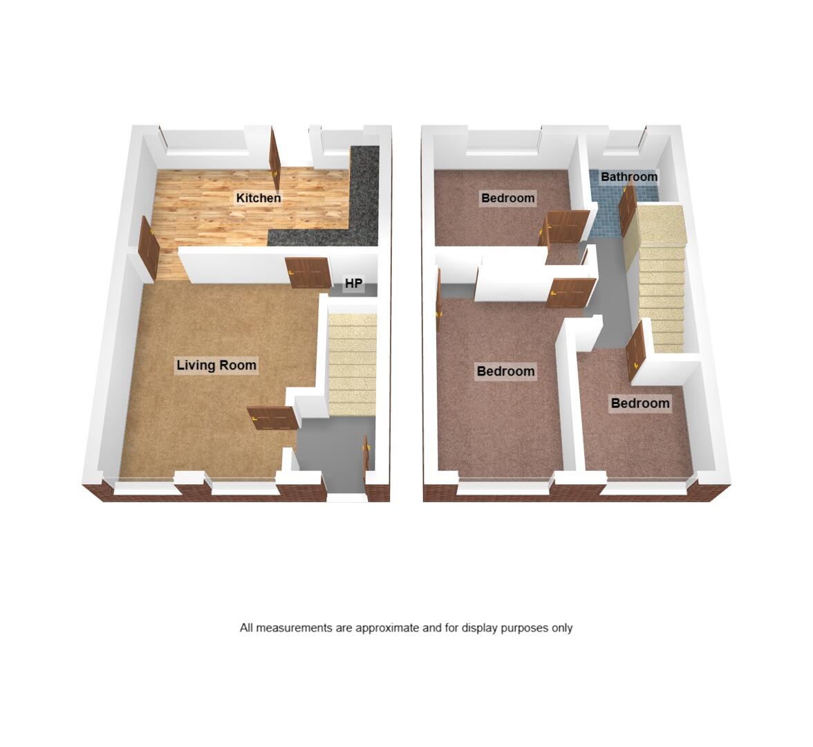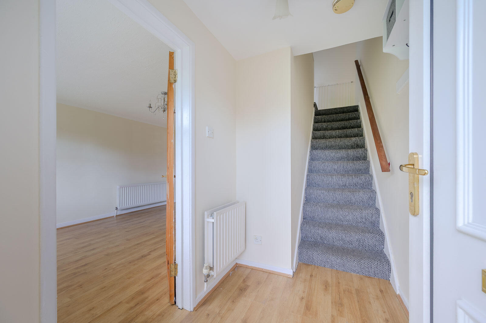 at widest points Laminate wood effect floor, attractive cast iron fireplace, slate hearth, open fire , cornice ceiling, storage under stairs.