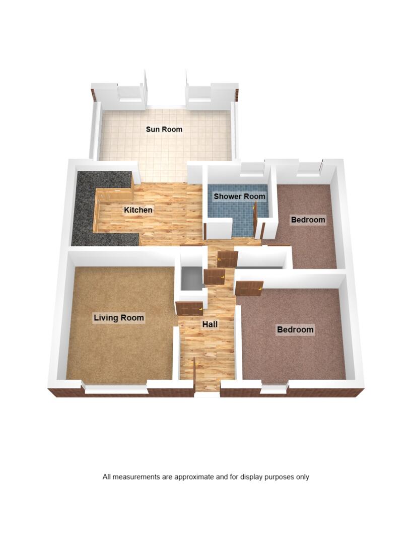 The accommodation is bright and spacious comprising living room with attractive fireplace, kitchen which is open plan to sun room with picturesque country views and double glazed French doors to the rear garden, two bedrooms, both with built-in wardrobes, and shower room with three piece suite. Outside does not disappoint either. There is a beautifully presented front garden area and fully enclosed low maintenance rear garden in attractive brick paviour with southerly aspect and views to the countryside making an ideal space for enjoying the sun or for outdoor entertaining. Other benefits include gas fired central heating and uPVC double glazed windows.