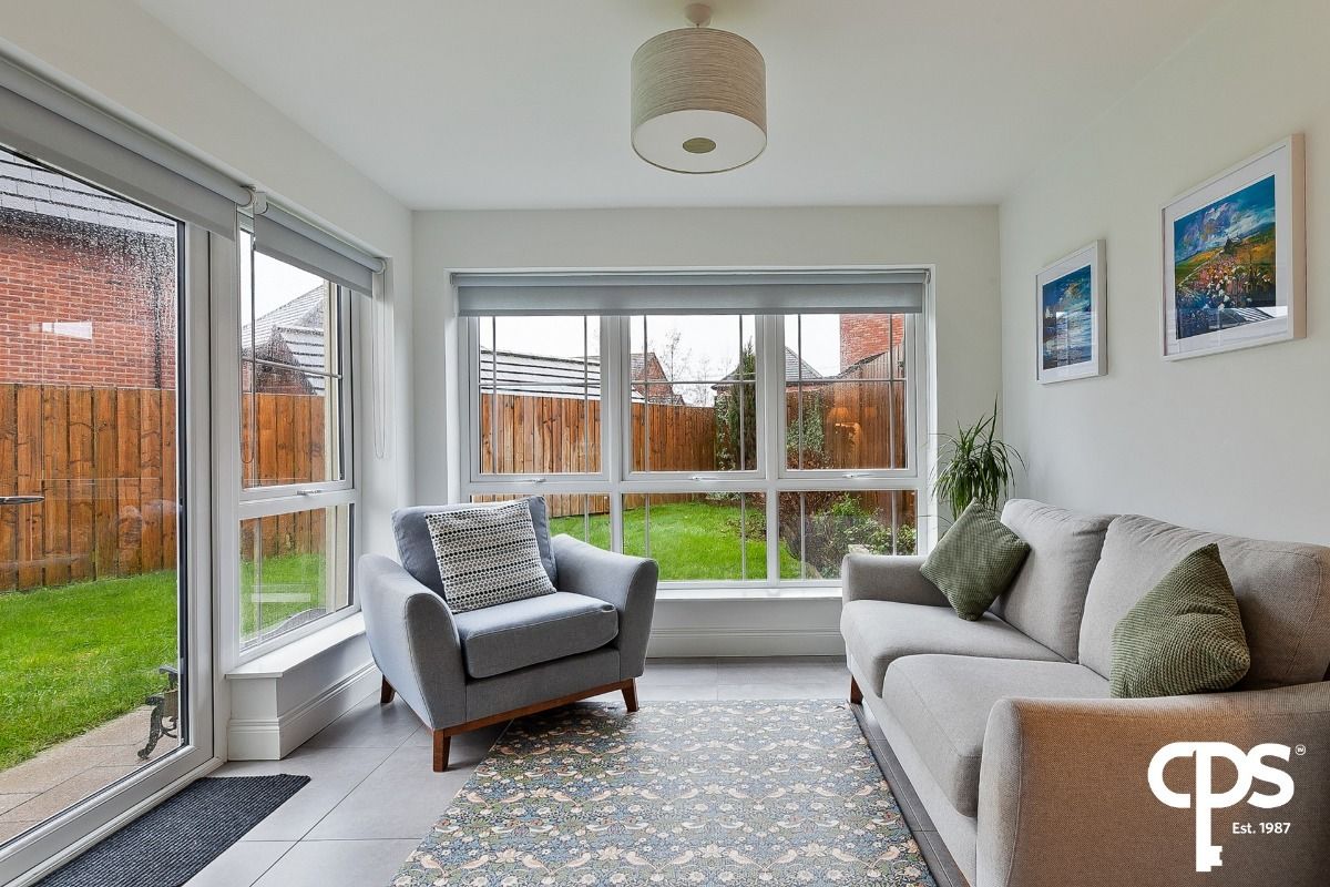 This family home comprises of a stunning front lounge, downstairs wc and open plan, modern kitchen/dining room through to a generous sunroom. The first floor holds three well-proportioned bedrooms, master with contemporary ensuite and a stylish family bathroom. This home boasts impressively high ceilings that enhance the sense of space, light and elegance throughout.
