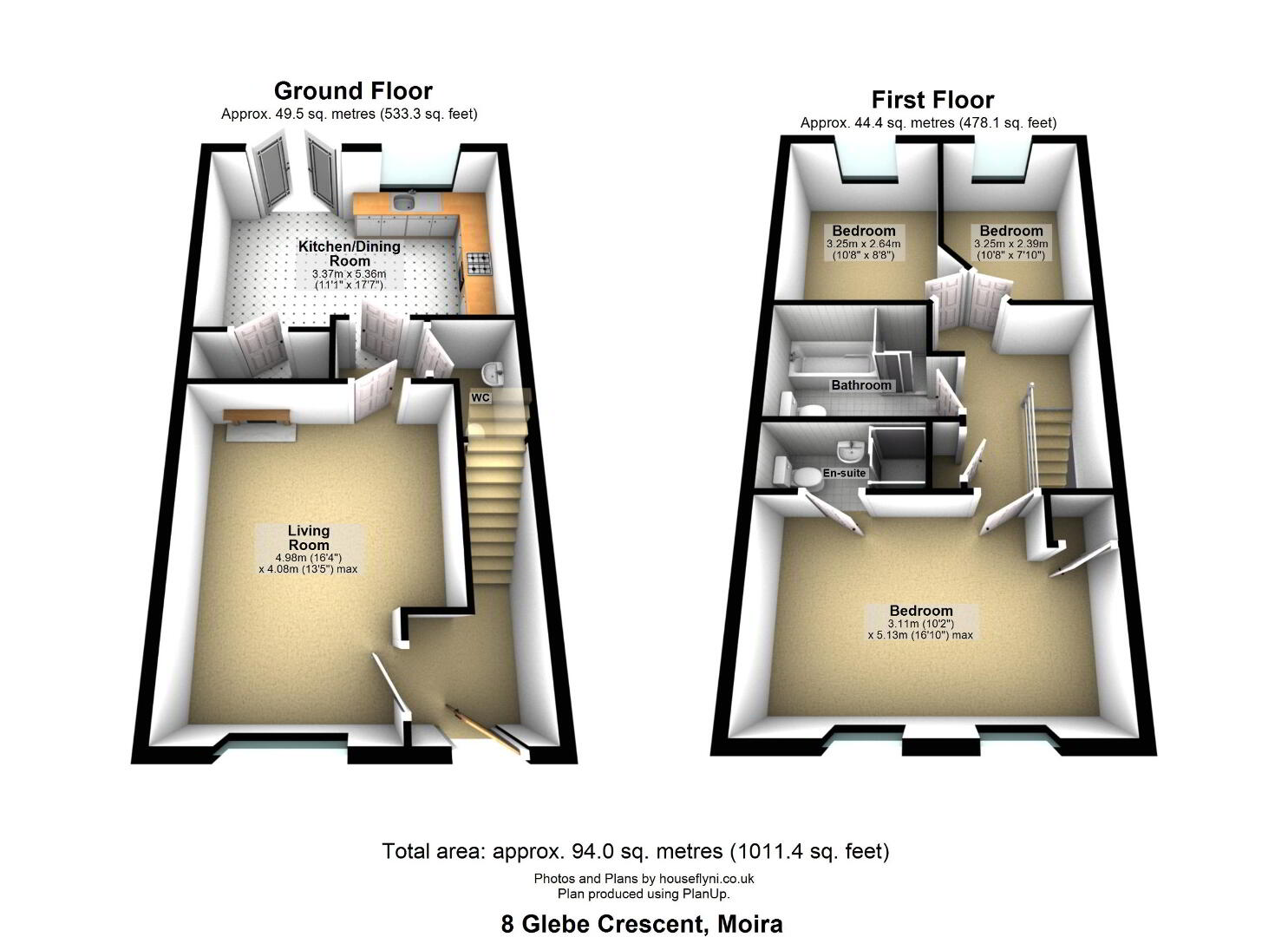 Upstairs, the main bedroom enjoys built-in storage and an en-suite shower room, while two further well-proportioned bedrooms and a contemporary family bathroom provide excellent accommodation.