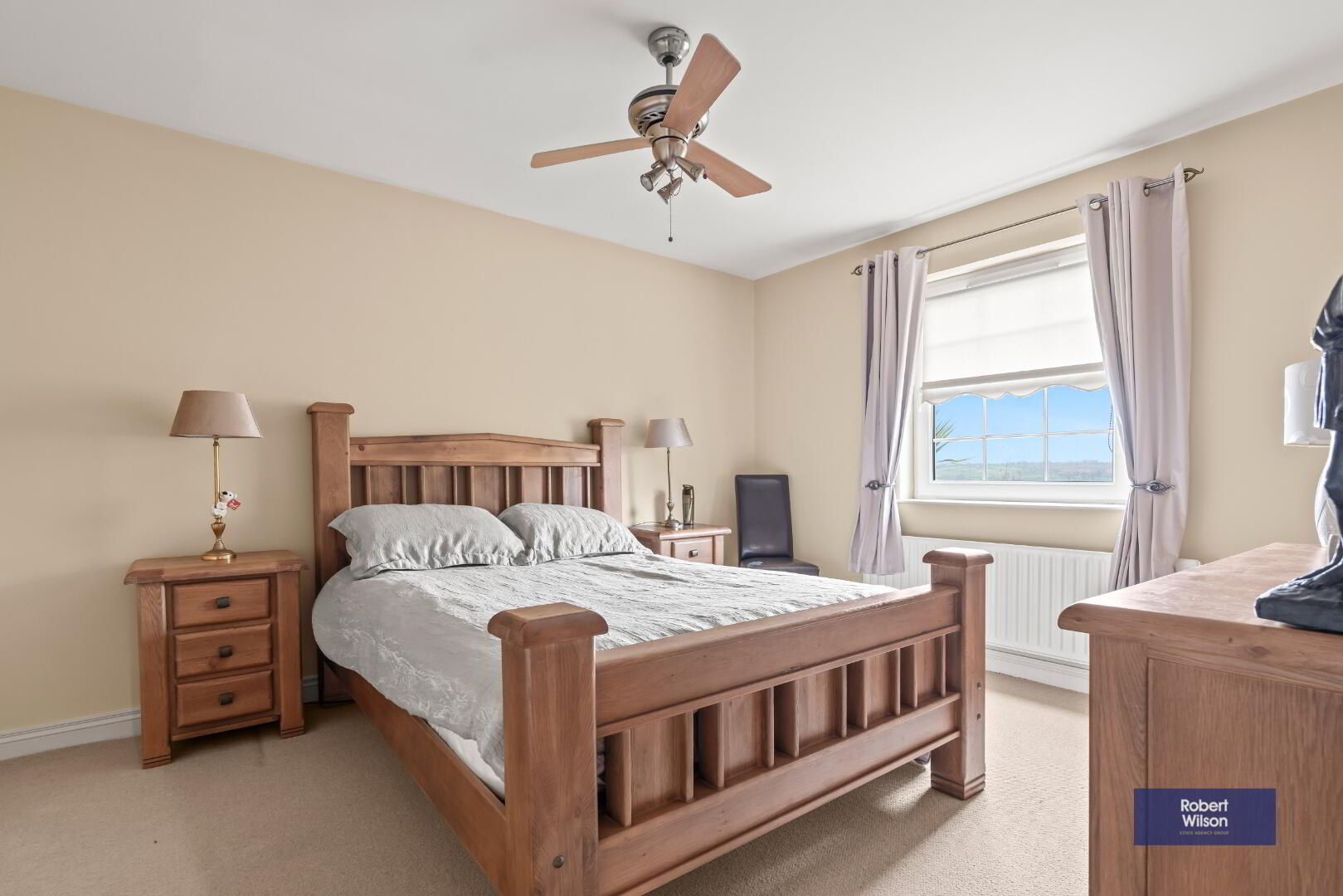 Upstairs, the home offers three comfortable bedrooms, including a generous main bedroom with modern en-suite. The family bathroom is a real highlight, boasting a jacuzzi-style bath and a walk-in ‘Insignia’ shower cubicle for a touch of luxury.