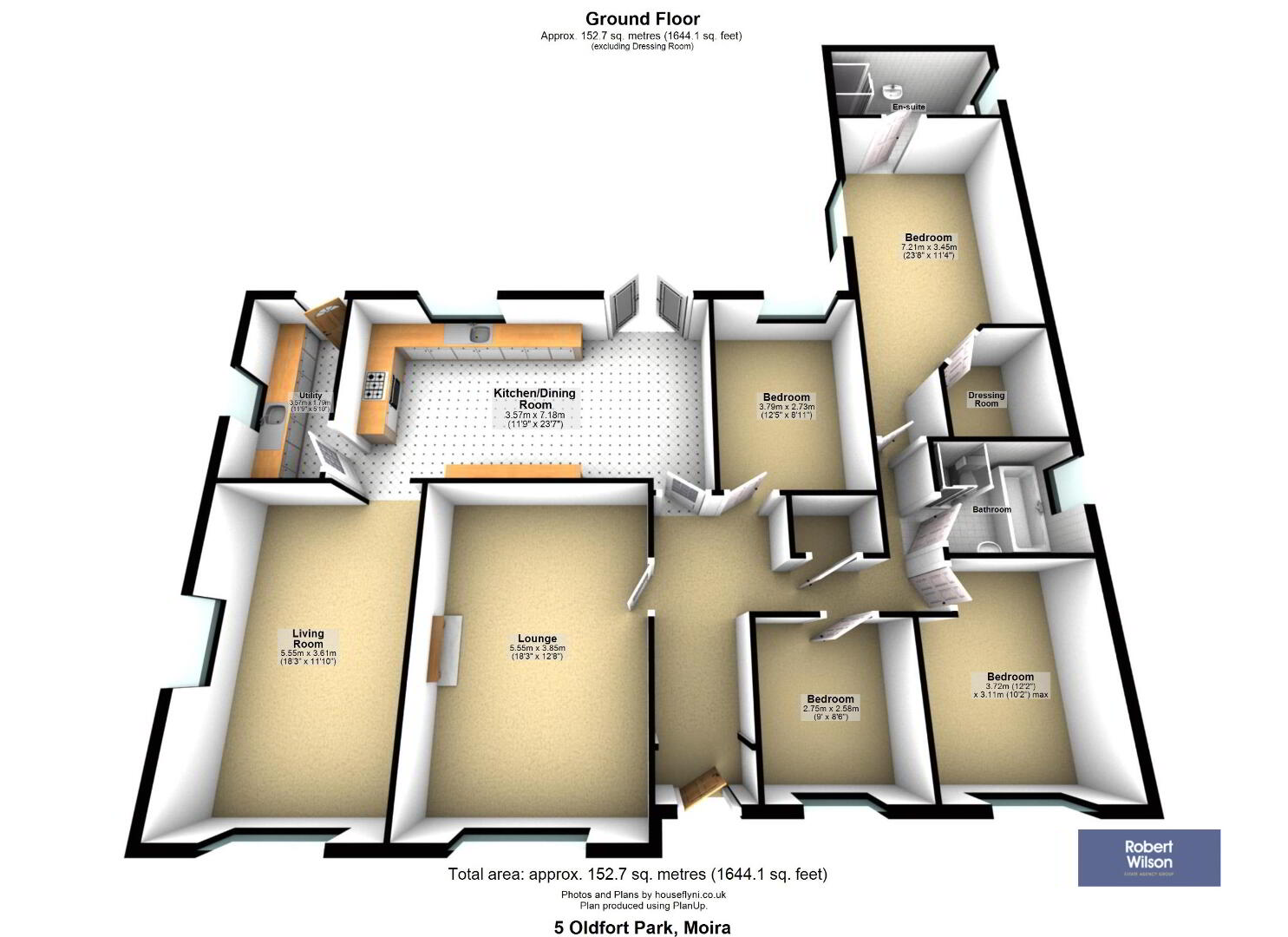 - Accomodation comprises; Entrance Hall, Lounge, Open Plan Kitchen, Dining, Living Room, Utility Room, 4 Bedrooms (Main with Walk in Wardrobe and En-Suite) and Bathroom.