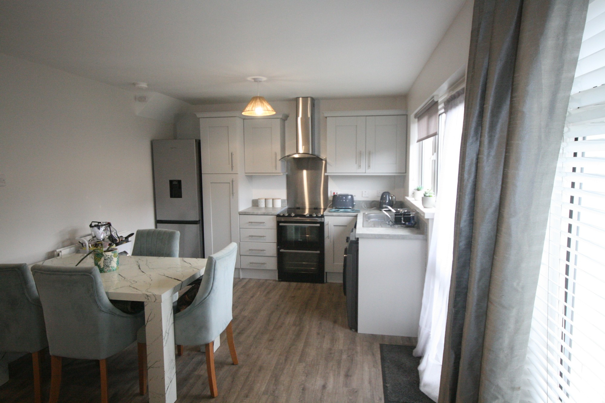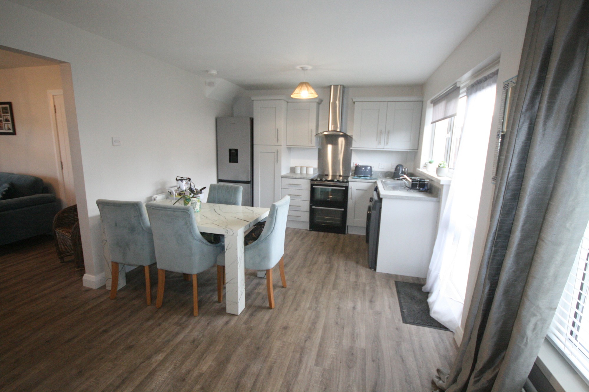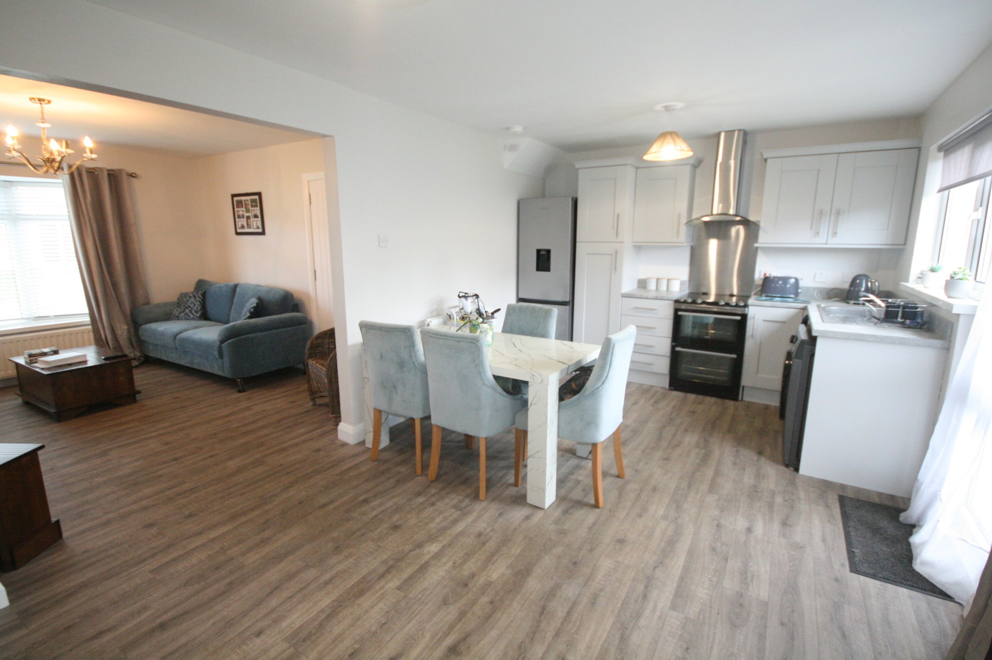 Accommodation comprises; covered entrance porch, entrance hall, open plan living room, dining area, kitchen first floor landing, 3 bedrooms and shower room.