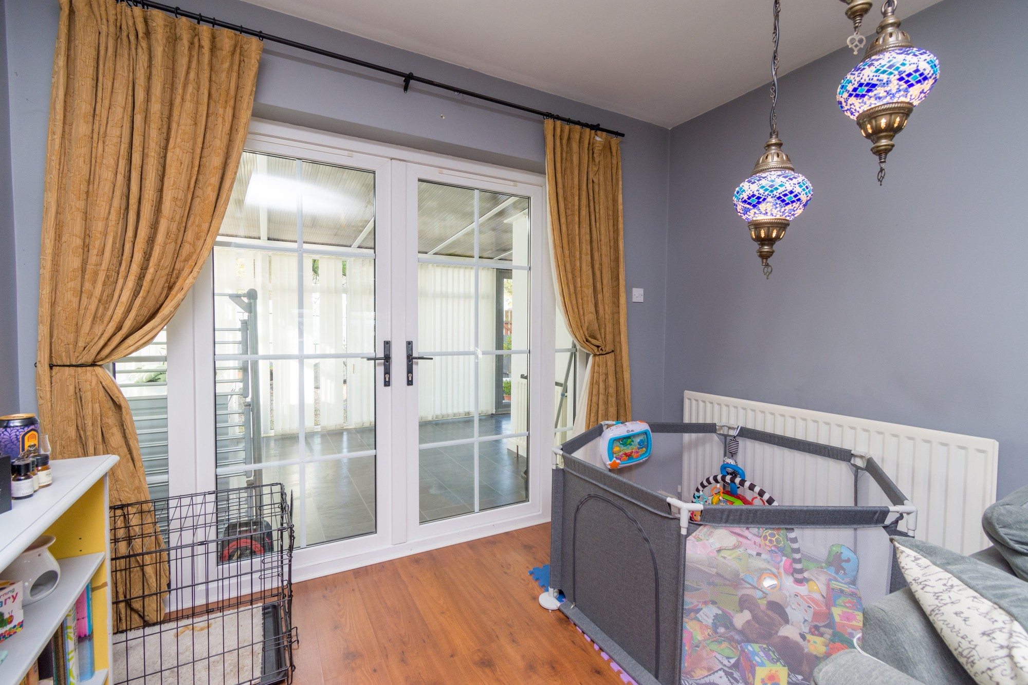Wired for wall lights, uPVC glass door to enclosed rear garden (measurements to max points).