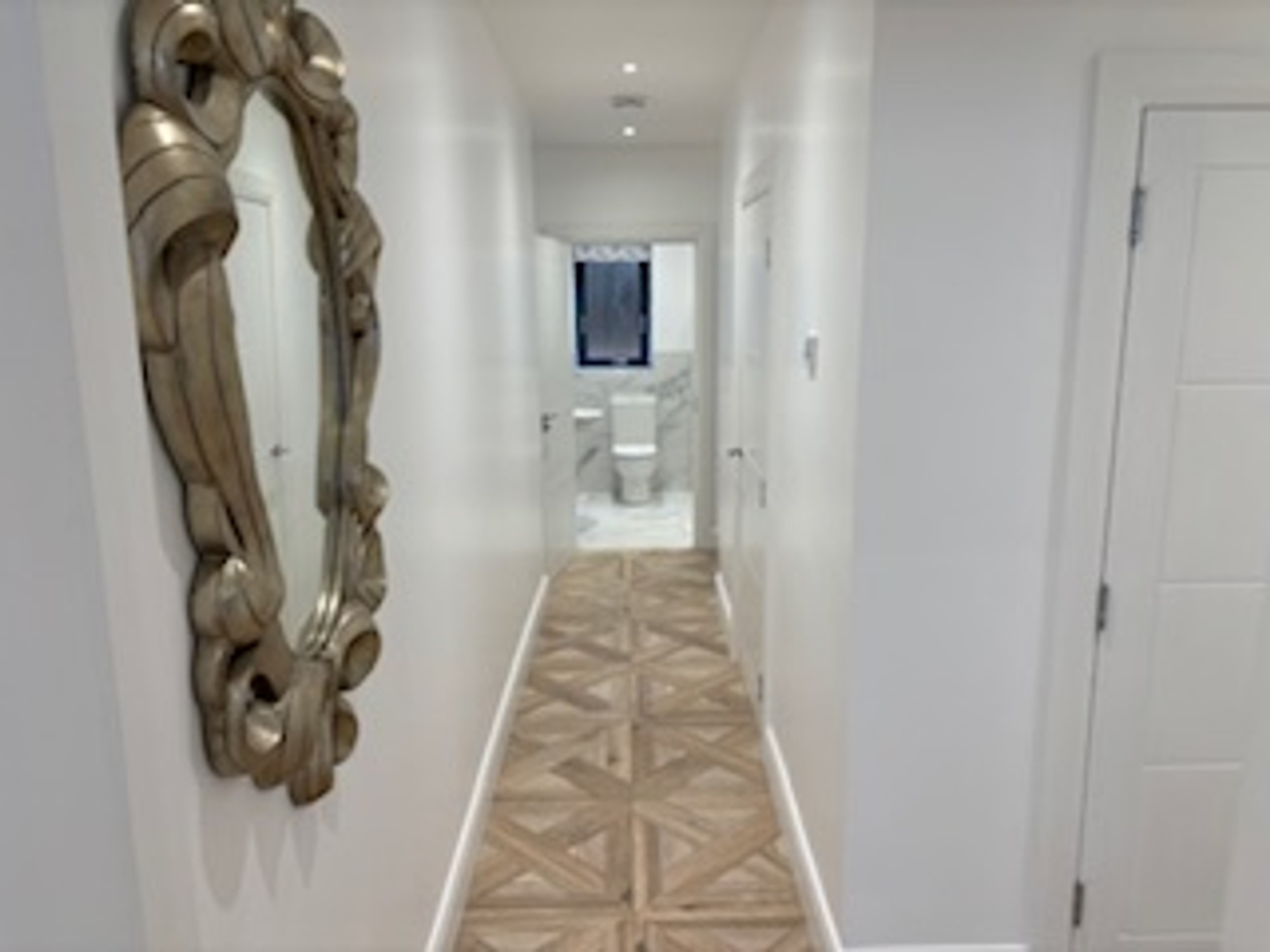 The high specification on offer includes; a contemporary fitted kitchen and integrated appliances, luxury sanitaryware to the ensuite and bathroom, double glazed energy efficient windows, gas central heating, white internal doors, skirting and architraves, a dedicated car parking space, and electric gates and front door which ensure security.