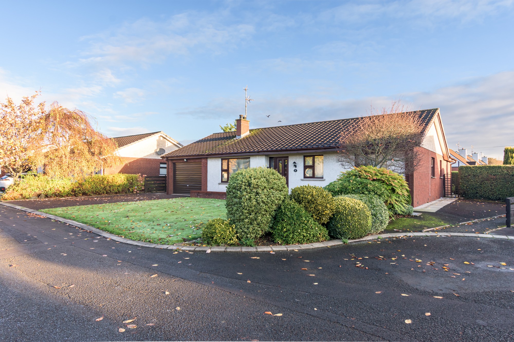 Garden in lawn to the front. Brick paved ramp to the front door. Asphalt driveway/ carparking to the front of the garage