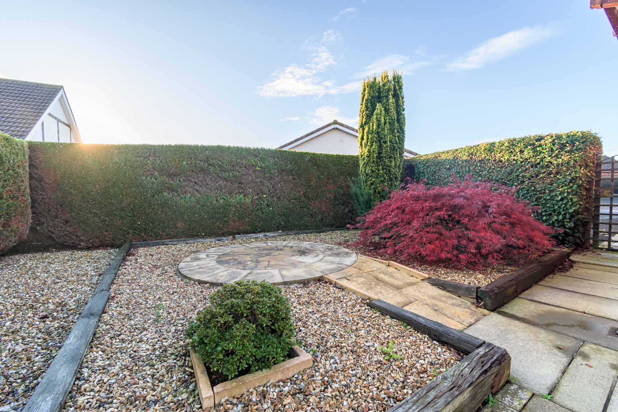 Private easily maintained side garden with feature circular patio area and easily maintained beds. Side gate leading to side additional carparking space.