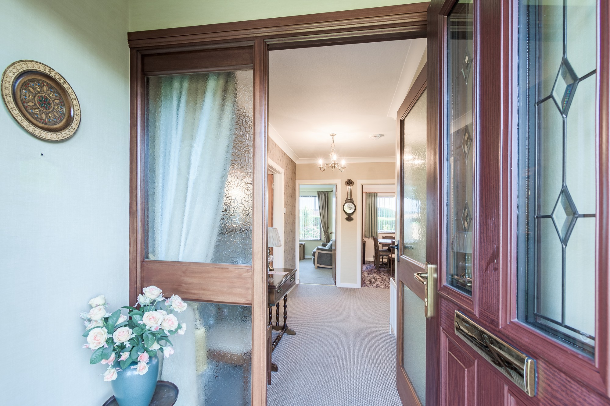 uPVC Double glazed entrance door and double glazed side panel. Coving to ceiling. Tiled floor
