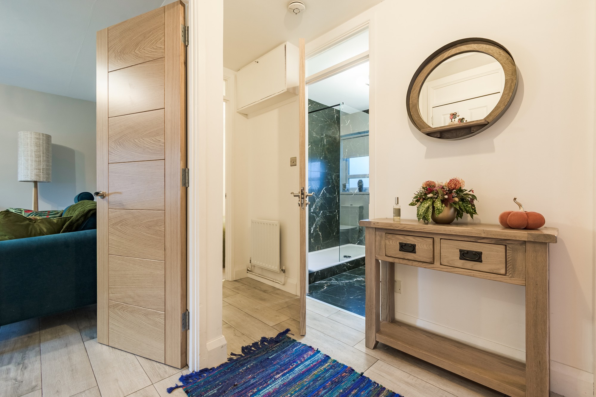 A lovely bright and airy first floor apartment with driveway/ carparking and enclosed rear garden.