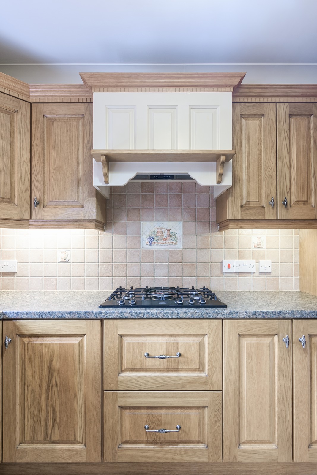 Solid Oak Fitted Kitchen with excellent range of High and Low Level Units. Hotpoint American Fridge Freezer. Extractor Fan. Partially Tiled Walls. 5 Ring Gas Hob. Built In Double Oven. Concealed Microwave. 1 1/2 Bowl Ceramic Sink with Mixer Tap. Integrated Dishwasher. Tiled Floor. Double Glazed Patio Doors to Balcony.